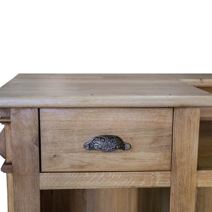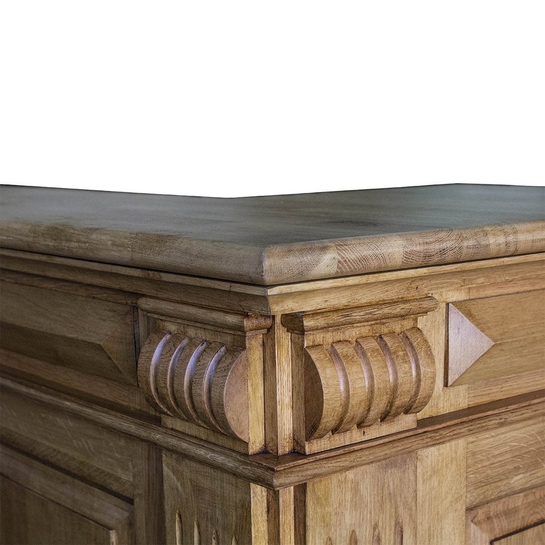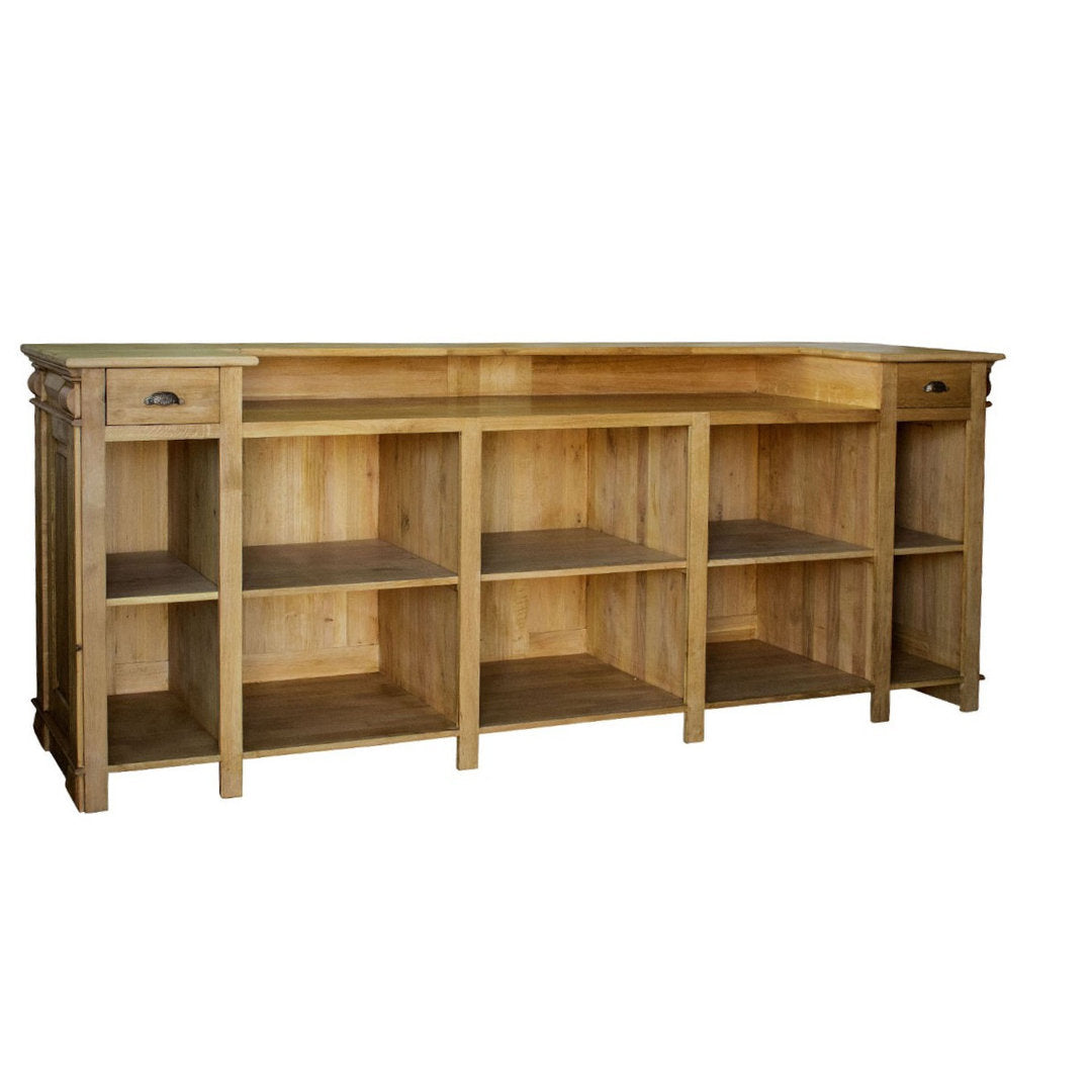 Con il suo design spazioso e accogliente, l'Ampio Bancone in Quercia è ideale per bar, brasserie, bistrot e negozi. La quercia massiccia conferisce un carattere unico, mentre i dettagli accurati, come i cassetti e gli scaffali, lo rendono un'aggiunta perfetta a qualsiasi spazio commerciale.