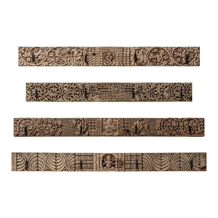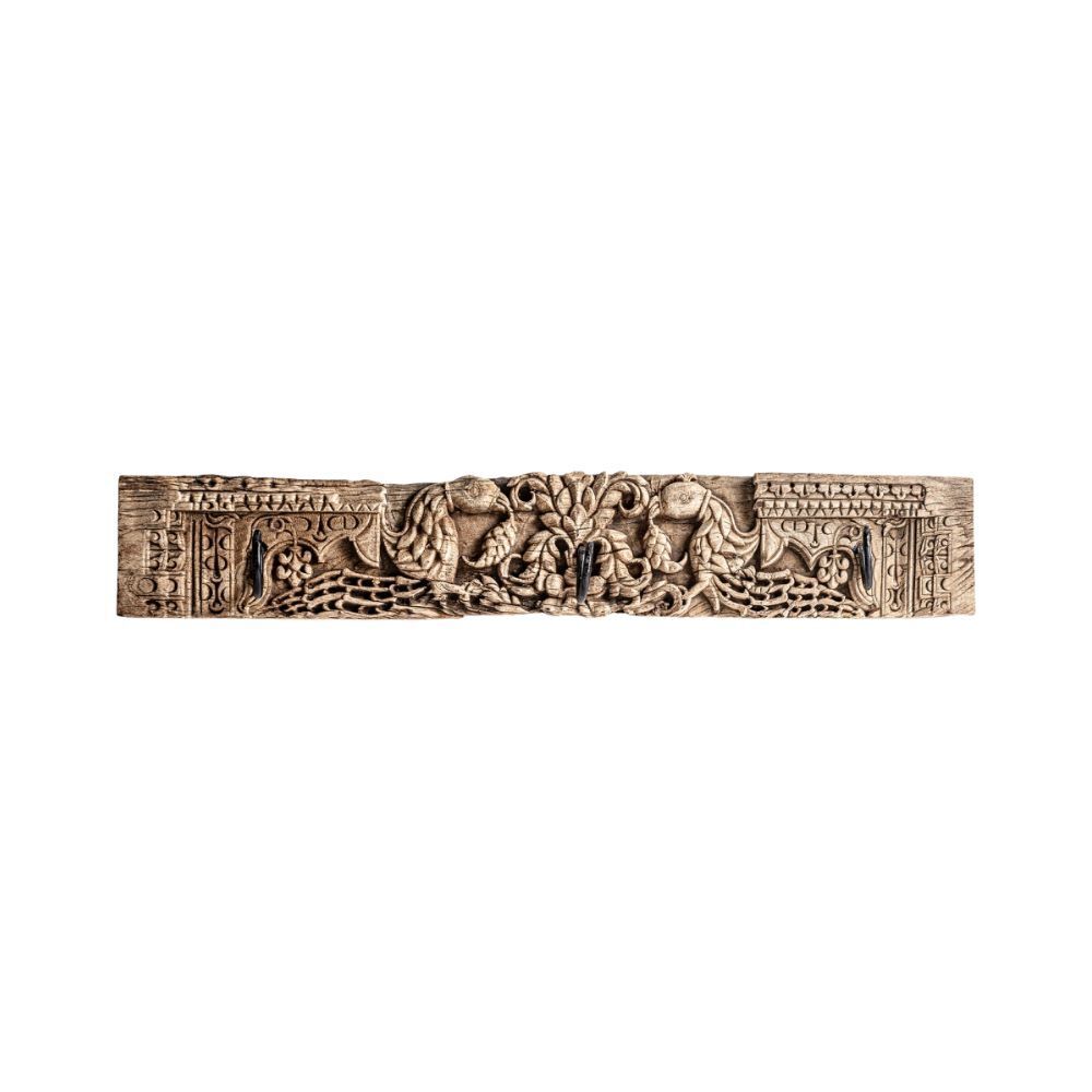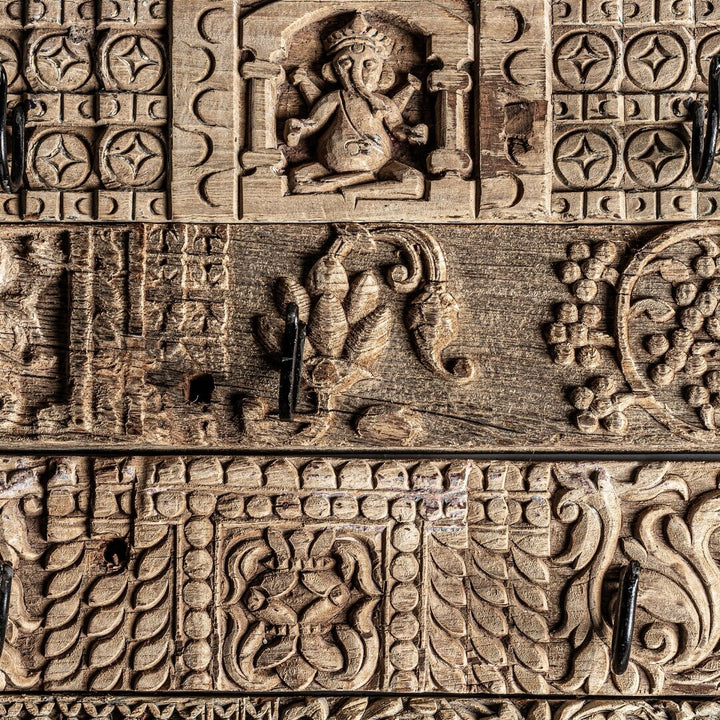 Appendiabiti Etnico in Legno di Teak Intagliato e Ferro Nero