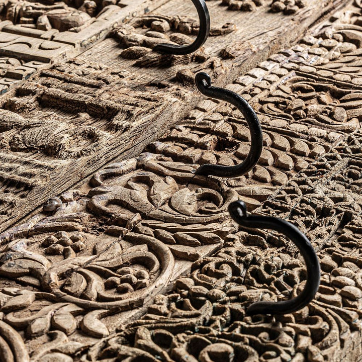 Appendiabiti Etnico in Teak Intagliato e Ferro Nero