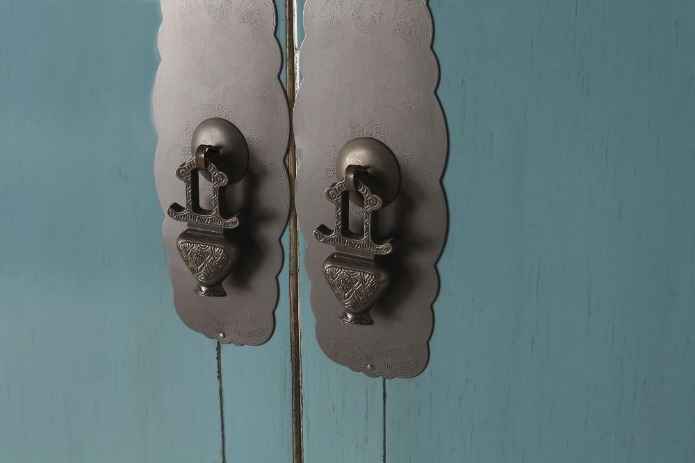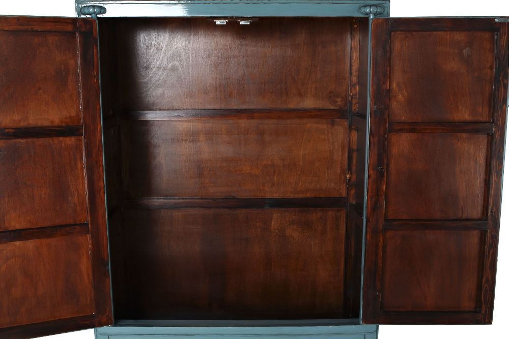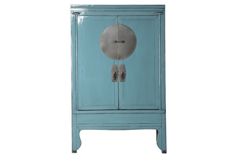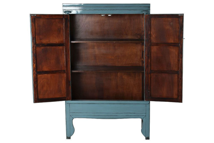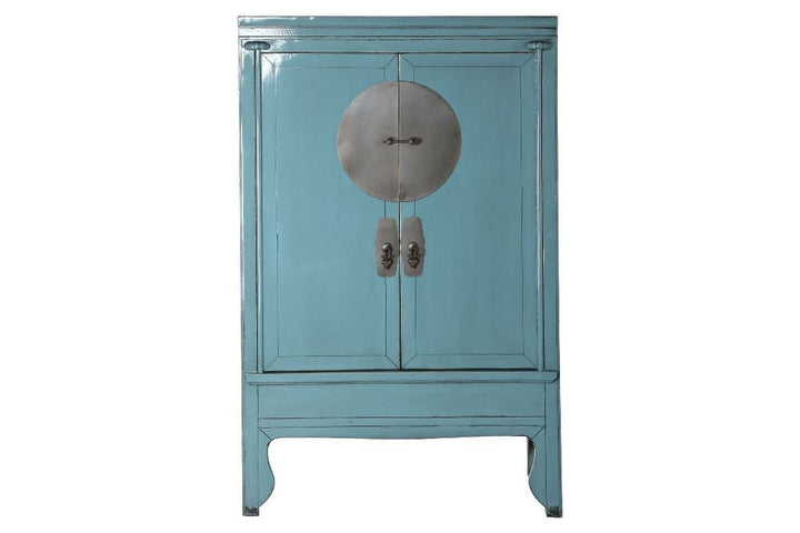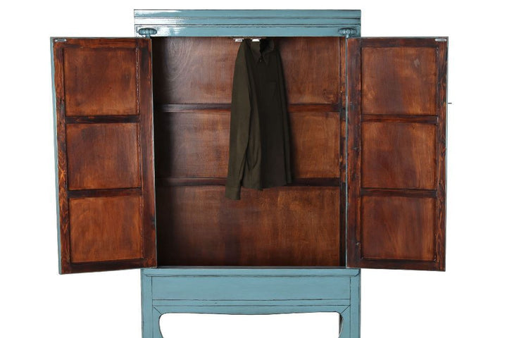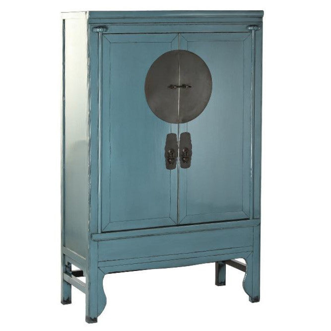 L'Armadio Orientale Cinese Celeste è realizzato in legno massello di olmo, unendo eleganza e funzionalità. Con dimensioni di 108 x 48 x H 174 cm, presenta schienale e pannelli interni marrone scuro, che aggiungono un contrasto raffinato. La finitura decapata shabby conferisce un aspetto vintage e affascinante. Questo armadio è ideale per chi cerca armadi orientali online, portando un tocco di cultura e stile nella propria casa, perfetto per arricchire qualsiasi ambiente con la sua presenza distintiva.