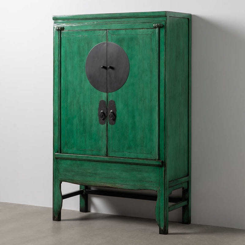 Armadio Cinese Verde in Legno Massello di Pino Riciclato