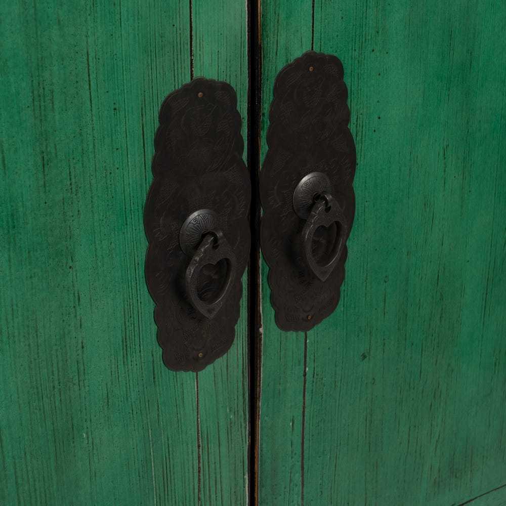 Questo armadio cinese verde incarna l'eleganza e la tradizione orientale, arricchito da un vibrante colore verde, simbolo di rinnovamento e vitalità nella cultura cinese. Realizzato in legno massello di pino riciclato, rappresenta una scelta sostenibile che valorizza l’artigianato tradizionale. I manici in rame offrono un contrasto affascinante, mentre l’aspetto invecchiato aggiunge carattere e storia. Perfetto per chi cerca vendita armadi orientali online, questa soluzione di stoccaggio si integra armoniosamente in qualsiasi ambiente. Le porte da 47x103,5 cm rivelano un interno spazioso, mentre le gambe alte garantiscono stabilità e un look elevato. Con una capacità di carico di 100 kg, questo armadio unisce estetica e funzionalità, portando un tocco di stile orientale a casa tua.