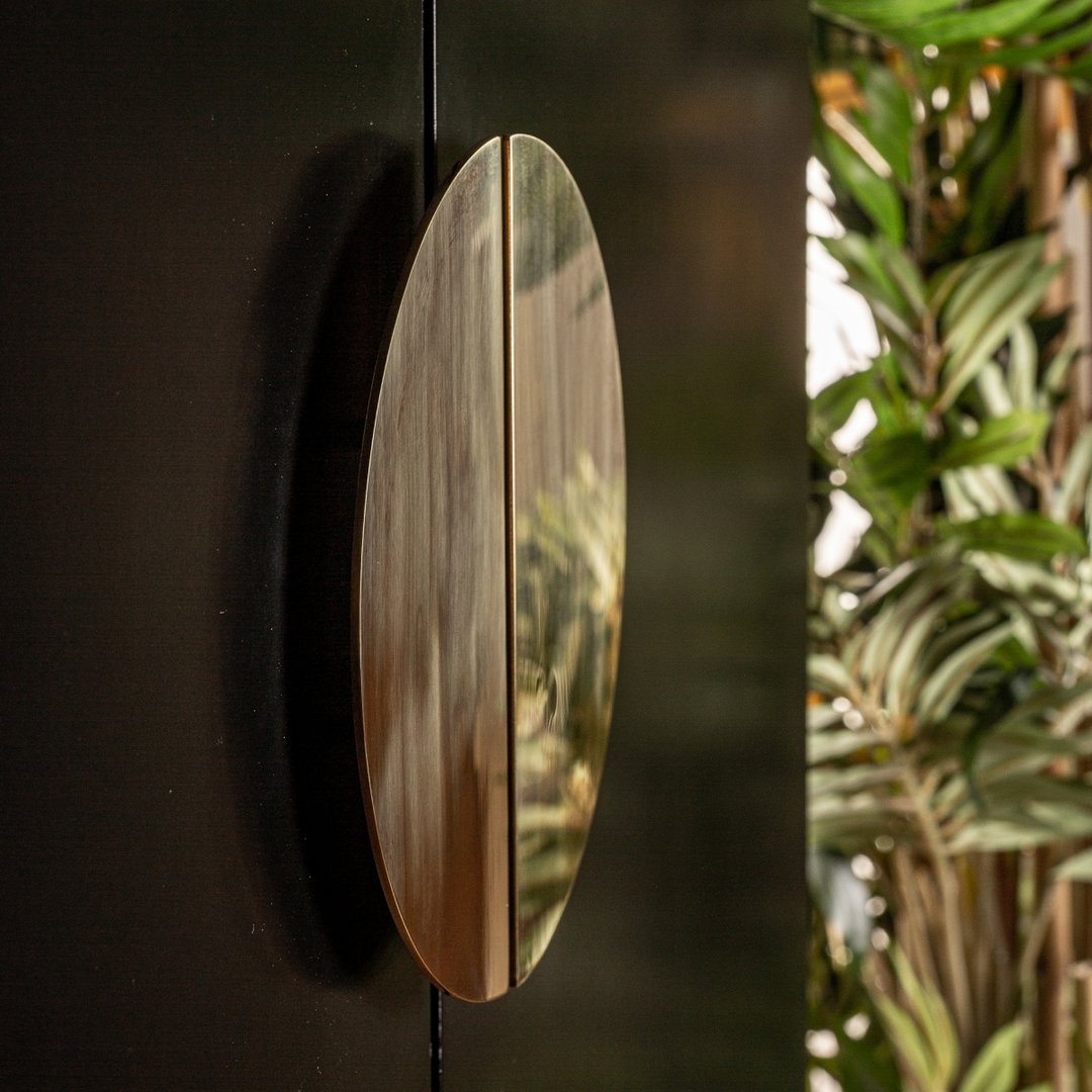 Lo stile Art Déco rivive in chiave moderna con questo armadio eclettico in legno, ferro e vetro. Con dettagli in nero e oro, il design combina eleganza e funzionalità, ideale per ambienti glam chic. Dotato di uno specchio interno e una balda in cristallo regolabile, offre una capacità di supporto fino a 50 kg, adattandosi alle tue esigenze. Le gambe alte e i tacchi regolabili garantiscono stabilità su diverse superfici, mentre il sistema di ancoraggio a parete assicura ulteriore sicurezza. Perfetto per chi cerca un mobile che unisca tradizione e innovazione, aggiungendo un tocco di sofisticata modernità al tuo spazio.