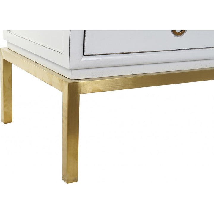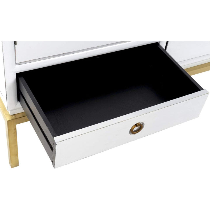 NOTE: Alamo laccato bianco, 2 ante, 2 cassetti, metallo dorato, peso 56 kg, ultimo pezzo, prodotto artigianale.