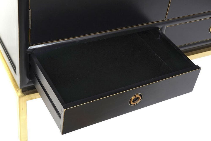 L'Armadio Etnico Chic Nero è realizzato in legno massello di alamo laccato, combinando eleganza e funzionalità. Con un peso di 56 kg, presenta 2 ante e 2 cassetti inferiori, ideali per l'organizzazione degli spazi. Le gambe e le maniglie in metallo dorato aggiungono un tocco di raffinatezza al design. Con dimensioni di 120 x 50 x H 175 cm, questo armadio è perfetto per chi cerca armadi stile etnico online, portando un pezzo unico e sofisticato nella propria casa.