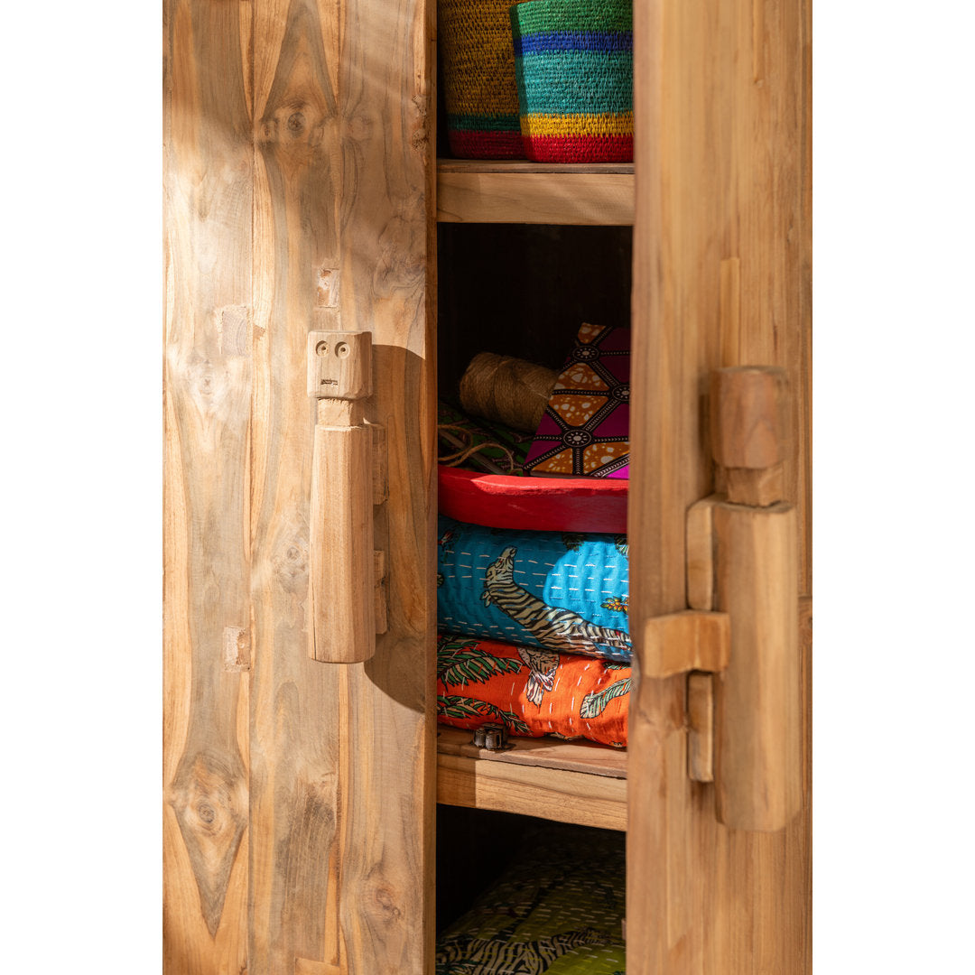 L'Armadio etnico naturale in teak con finitura rustica e peso di 75 kg si distingue per la sua capacità di coniugare praticità ed eleganza. Realizzato in legno di teak, noto per la sua robustezza e durata, è ideale per chi ama uno stile naturale e autentico. Le dimensioni di 95 x 58 x H 172 cm lo rendono perfetto per diversi ambienti, offrendo ampio spazio di stoccaggio grazie alle 2 mensole interne. Questo armadio è una scelta eccellente per chi cerca armadi etnici online che possano arricchire la propria casa con un tocco di cultura etnica. I dettagli e la finitura rustica si abbinano a interni ispirati a viaggi, creando un'atmosfera accogliente e rilassante. Acquistare armadi etnici online è diventato un trend in crescita, poiché permette di portare a casa pezzi unici che raccontano storie di terre lontane. L'armadio in teak è quindi un vero elemento di design che racchiude bellezza, funzionalità e un pezzo di mondo.