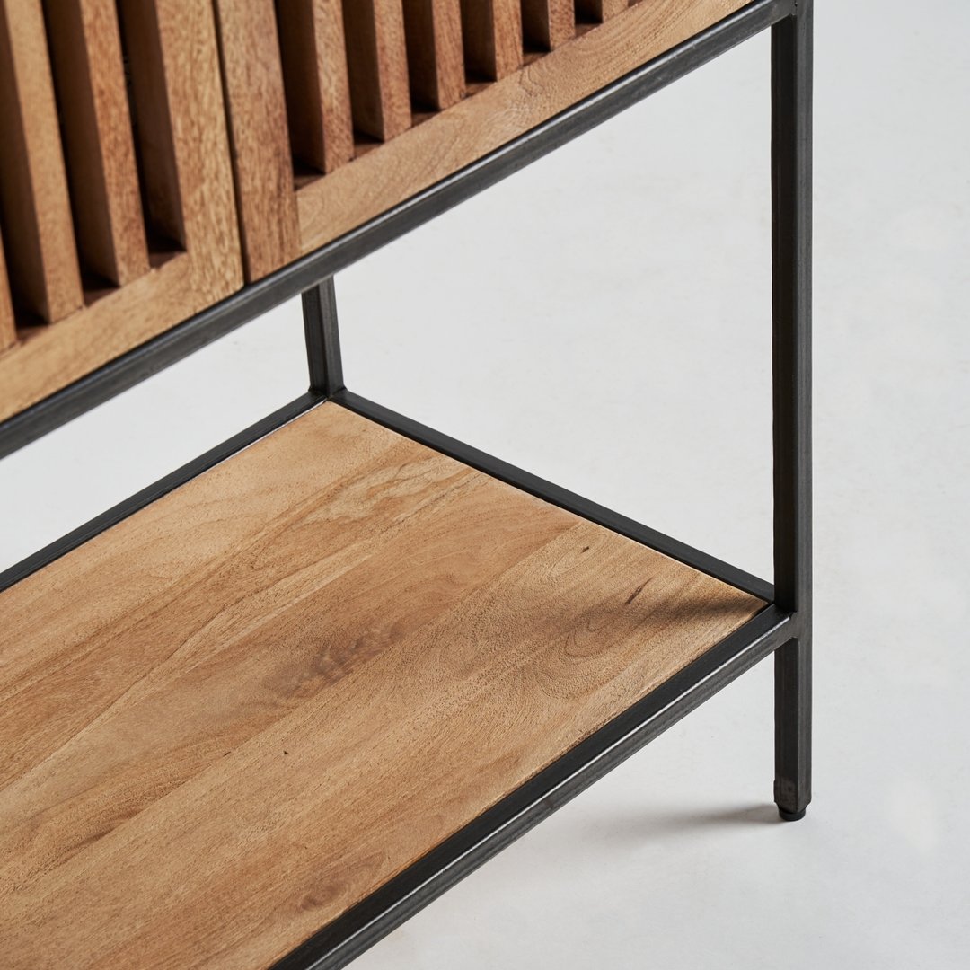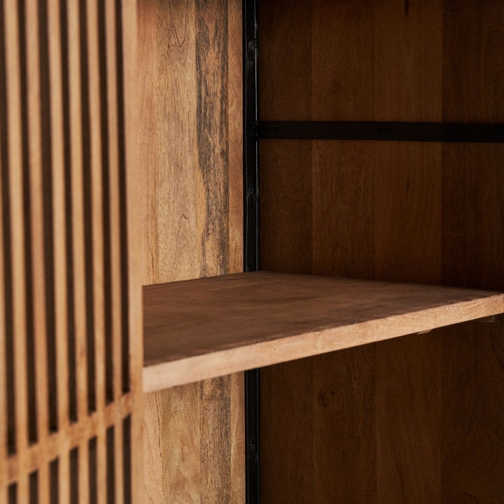 L'Armadio Oriental Chic Etnico è realizzato in legno massello di mango e ferro, unendo eleganza e robustezza. Con dimensioni di 90 x 45 x H 195 cm, presenta 2 ante e 3 mensole, di cui 2 interne, per un'ottima organizzazione. Realizzato artigianalmente, il suo colore naturale aggiunge un tocco autentico a qualsiasi ambiente. Questo armadio è ideale per chi cerca armadi etnici industrial, portando un pezzo distintivo e affascinante nella propria casa, perfetto per arricchire lo stile di qualsiasi spazio.