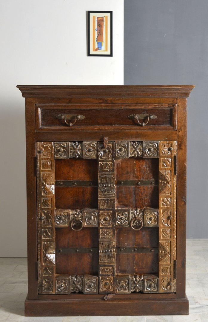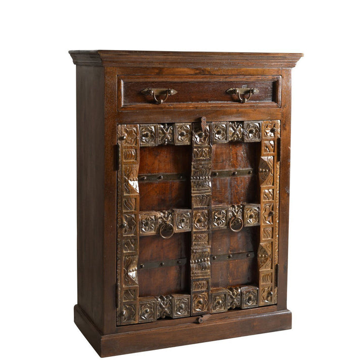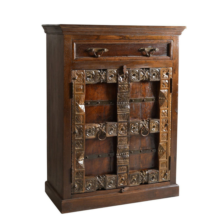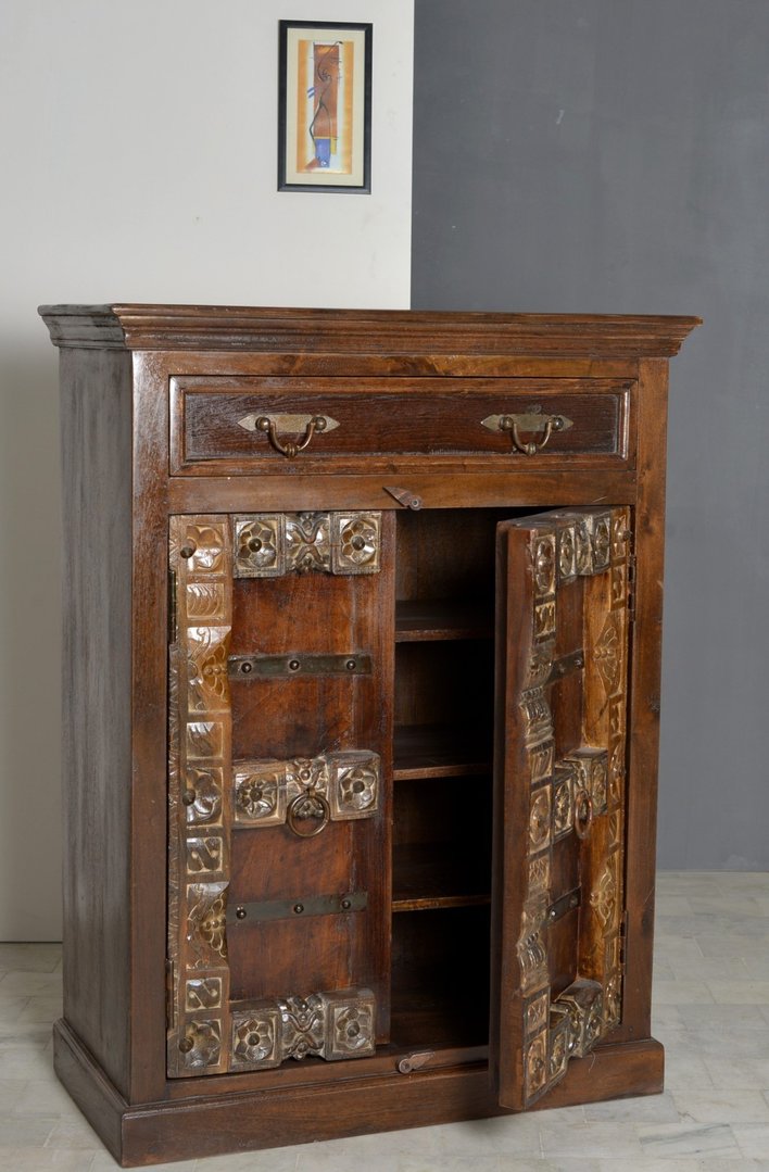 L'Armadio Etnico Orientale è realizzato con una struttura in legno massello, combinando robustezza e stile autentico. Con dimensioni di 90 x 45 x H 120 cm, presenta 2 ante, 3 mensole e 1 cassetto, offrendo un'ottima organizzazione. Le ante sono realizzate con porte indiane restaurate, rendendo ogni pezzo unico e distintivo. Questo armadio è ideale per chi cerca vendita armadi indiani online, portando un tocco di cultura orientale nella propria casa.