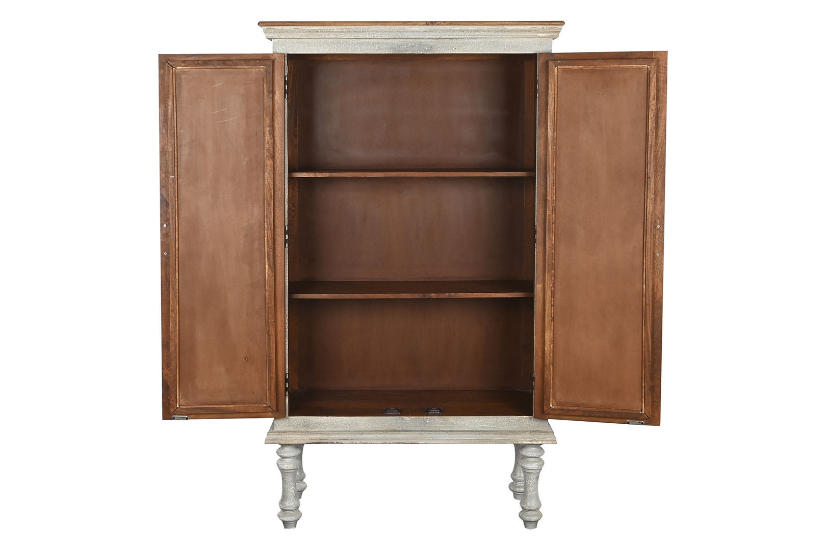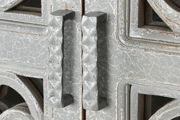 Armadio Orientale Grigio Shabby in Legno Massiccio e Specchio