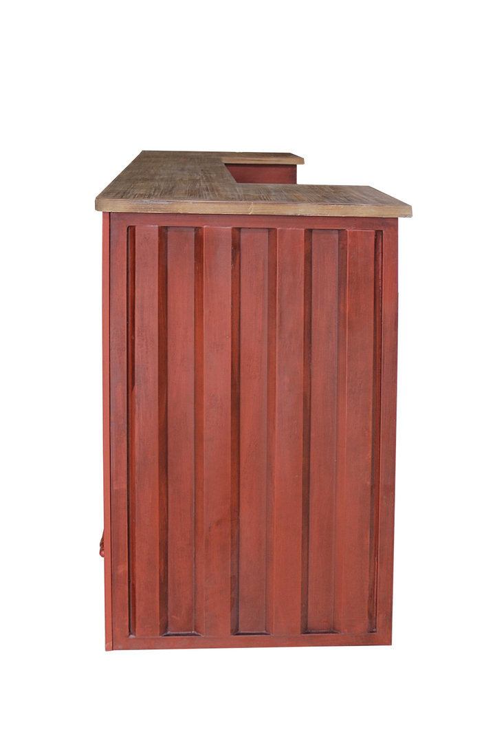 Con la sua combinazione di materiali resistenti e l'estetica industriale, questo Bancone Bar Stile Industriale si distingue per il suo aspetto notevole. Le linee pulite e la finitura cerata mettono in risalto la bellezza naturale dell'abete, mentre gli elementi in ferro aggiungono un tocco moderno e robusto.