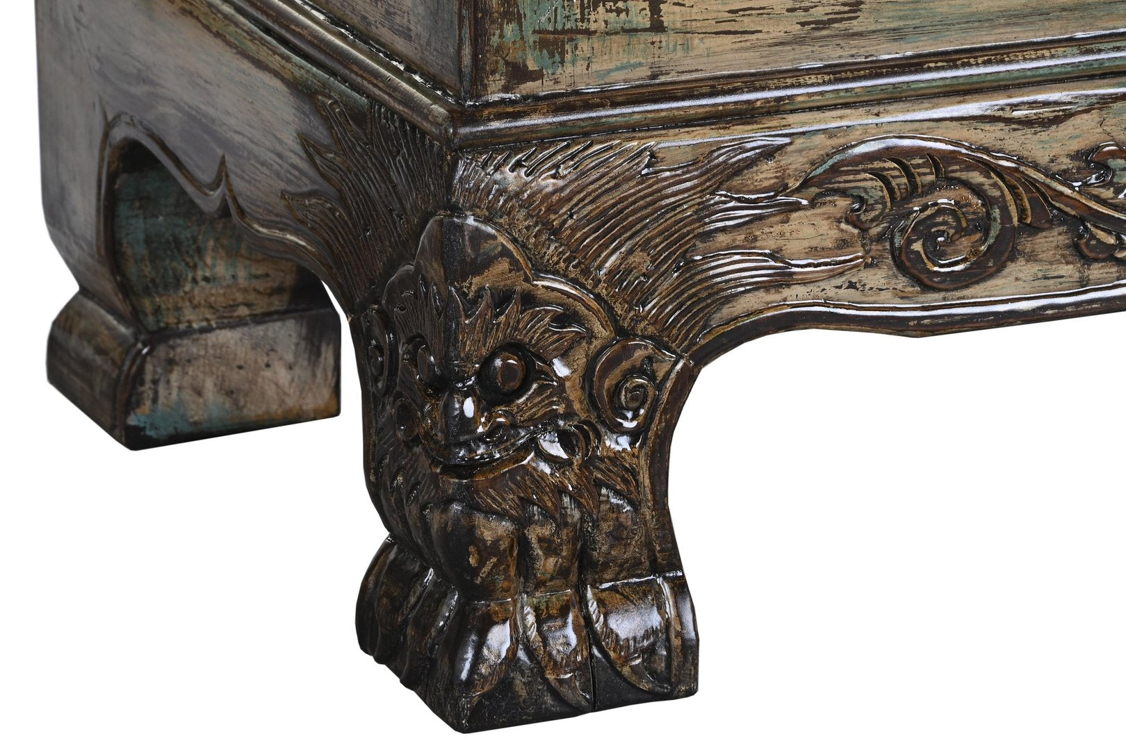 Scopri il fascino unico della Cassapanca Orientale Chic, un pezzo di arredamento che porta con sé l'eleganza e la storia delle culture orientali. Realizzata in legno massello di olmo invecchiato, questa cassapanca non solo è funzionale ma anche ricca di stile. Misurando 180 cm di lunghezza, 43 cm di profondità e 58 cm di altezza, con un'altezza di seduta di 50 cm, è perfetta per aggiungere un tocco di sofisticazione a qualsiasi ambiente. I quattro cassetti frontali, adornati con intarsi orientali, offrono spazio ampio per l'organizzazione e la conservazione, mentre il design elaborato e i dettagli artistici esaltano l'aspetto visivo della cassapanca. Ideale per chi cerca pezzi d'arredo che raccontano una storia, questa cassapanca è una scelta eccellente per aggiungere un elemento di interesse visivo in qualsiasi stanza. Non perdere l'opportunità di esplorare la nostra selezione di vendita bauli etnici online per scoprire altre gemme uniche.