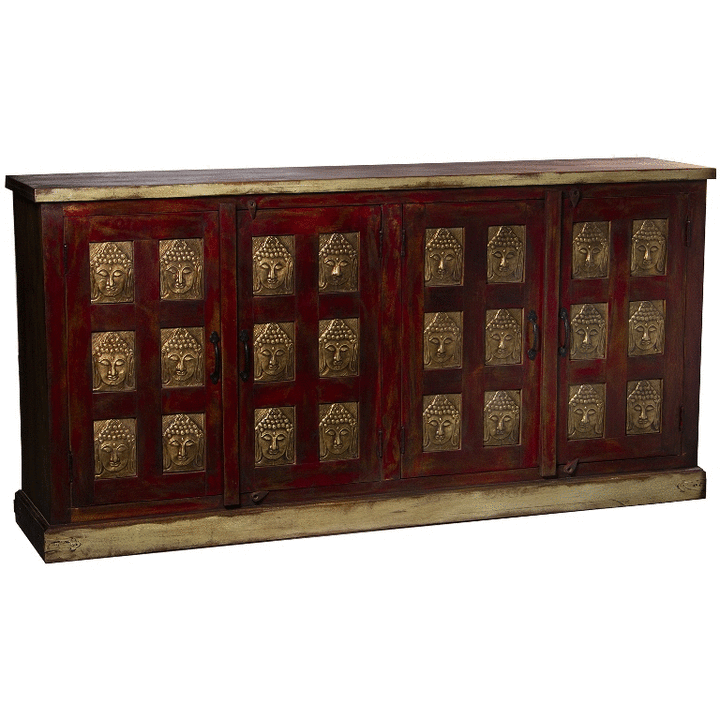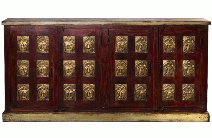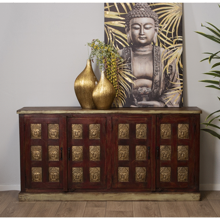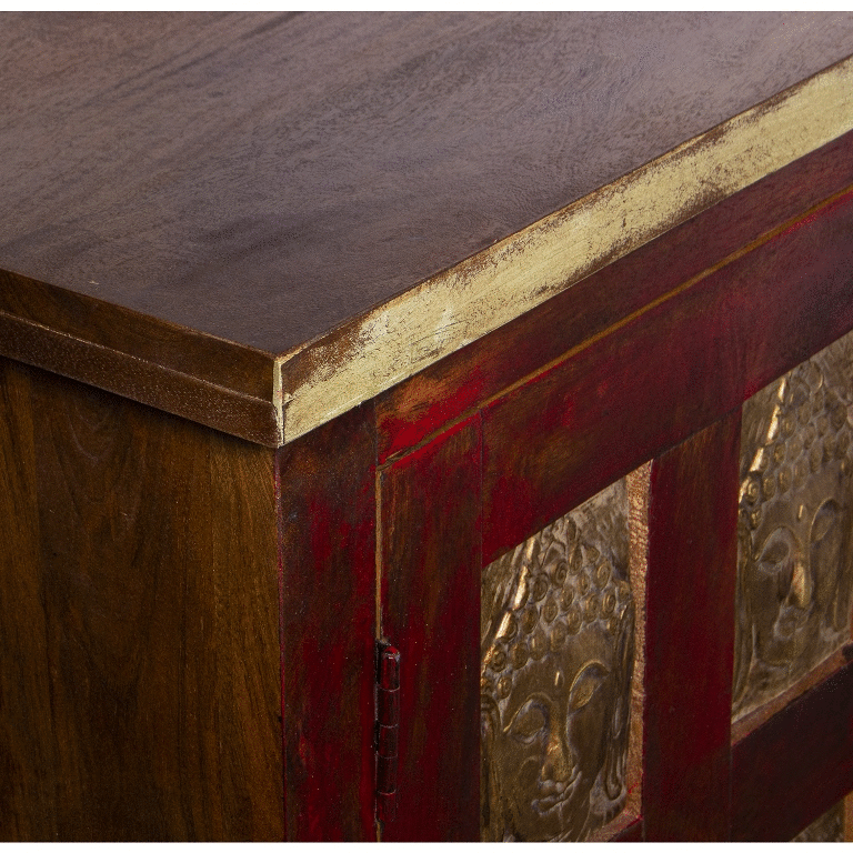 Buffet Credenza in Legno Massello di Mango con Applicazioni in Ottone Anticato Dorato