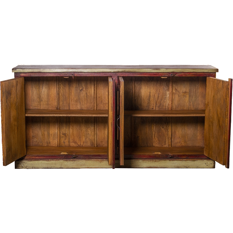 Design Elegante e Funzionale: Con quattro ante spaziose, questa credenza offre ampio spazio di archiviazione per soddisfare le tue esigenze quotidiane. La combinazione di legno massello e ottone crea un contrasto visivo affascinante che attira l'attenzione e aggiunge carattere all'ambiente.