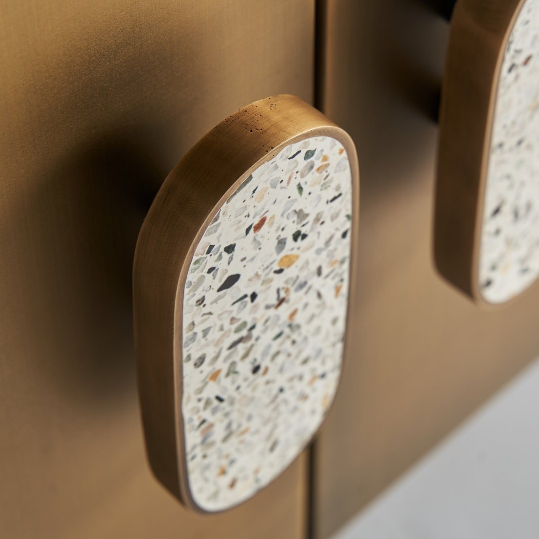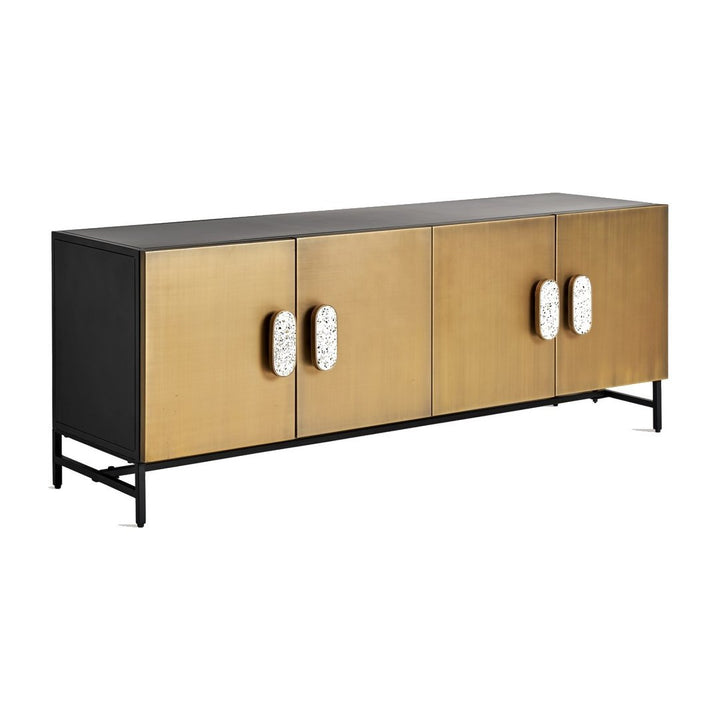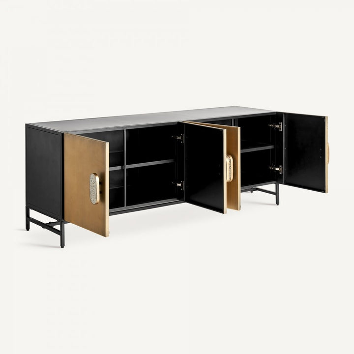 Scopri l'eleganza del Buffet Industrial Chic, un'opera d'arte che unisce l'estetica Art Deco con il moderno stile industriale. Realizzato in ferro, abbinato a elementi in ottone, questo mobile è una dichiarazione di stile e funzionalità. Con dimensioni di 183 x 51 x 70 cm e un peso di 64,2 kg, offre ampio spazio di organizzazione grazie a 4 porte e 1 ripiano fisso per vano, con un'altezza di 24 cm tra gli scaffali. Ogni scaffale può sostenere fino a 15 kg di peso. Il buffet include parti smontabili, come le sue eleganti gambe da 2x2x16 cm, che offrono stabilità e design. Inoltre, è dotato di tacchetti regolabili e 2 fori per cavi nella parte posteriore, assicurando praticità e facilità di gestione dei cavi. Il suo colore oro nero aggiunge un tocco sofisticato, rendendo il Buffet Industrial Chic perfetto per un arredamento contemporaneo e di classe.