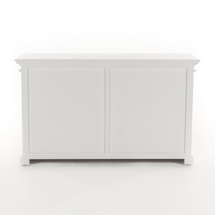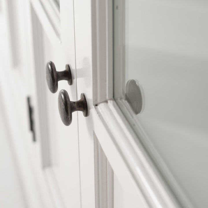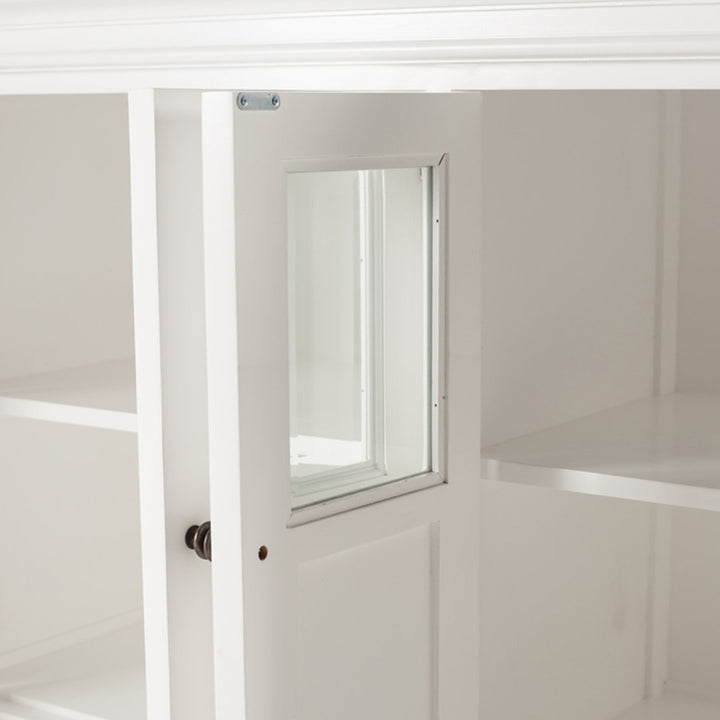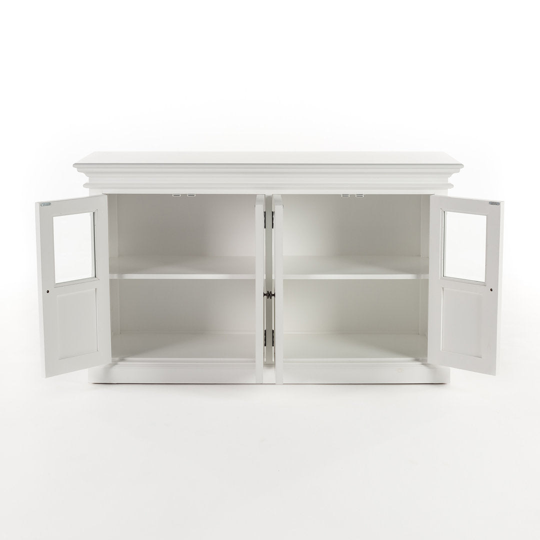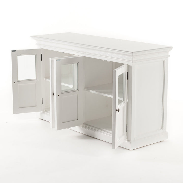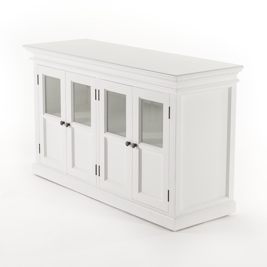 Questo raffinato e spazioso buffet provenzale chic rappresenta l'essenza del design classico e dell'eleganza senza tempo. Con ben 4 ante, ciascuna sapientemente realizzata con una combinazione di vetro e legno, questo mobile diventa il fulcro di qualsiasi ambiente in cui viene inserito, offrendo al contempo una capacità di stoccaggio ineguagliabile.