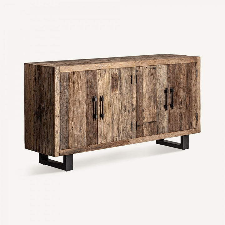 Uno stile che fonde influenze industrial e country, creando un equilibrio perfetto tra rustico e moderno. Il buffet in legno di pino è perfetto per aggiungere un tocco di stile industrial-country al tuo arredamento. Con misure di 180 x 45 x 90 cm e un peso di 99,6 kg, questo mobile offre una soluzione ottimale per spazi che richiedono un design compatto ma spazioso. Realizzato con legno recuperato e dettagli in ferro, il buffet combina durabilità e estetica, garantendo resistenza e uno stile senza tempo. Dotato di quattro porte e due ripiani fissi che supportano fino a 15 kg ciascuno, questo pezzo è ideale per organizzare la casa conservando oggetti di valore o esponendo elementi decorativi. Le gambe robuste con tacchi regolabili assicurano stabilità e un aggiustamento perfetto in ogni ambiente, rendendo questo buffet rustico un'aggiunta indispensabile per chi cerca mobili funzionali e di design.