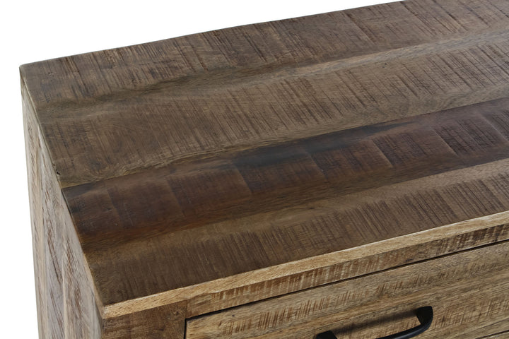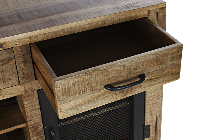 Unendo la robustezza del ferro e il calore del legno massello di mango, questa credenza porta un'estetica industrial distintiva che si sposa perfettamente sia con interni moderni che con quelli più tradizionali. La finitura naturale del legno accostata al metallo nero crea un contrasto affascinante, perfetto per chi cerca un pezzo d'arredo che sia sia funzionale che di grande impatto visivo. Dotata di tre cassetti, due ante e quattro mensole, offre soluzioni pratiche per l'organizzazione dello spazio. Dimensioni dettagliate includono: larghezza cassetti di 38 cm, profondità 32 cm, altezza 11,5 cm; larghezza delle porte di 41 cm, profondità 3 cm, altezza 48 cm; distanza tra le mensole di 24 cm. Questa credenza non è solo un elemento decorativo, ma un investimento in funzionalità che arricchirà qualsiasi ambiente con il suo carattere country chic e la sua robustezza.