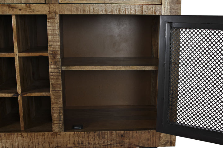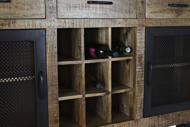 Credenza Portabottiglie Stile Industrial in Legno di Mango e Ferro