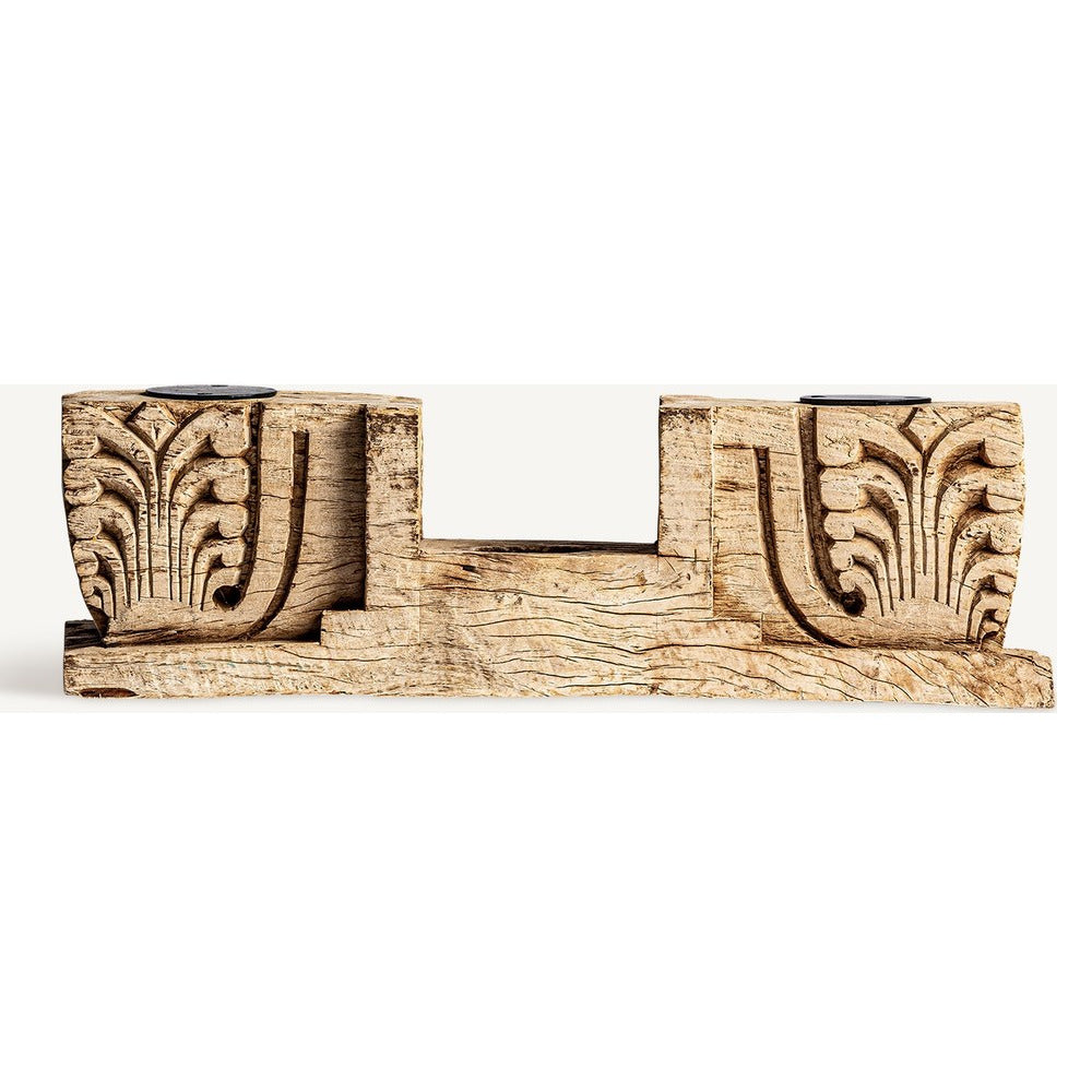 NOTE: Teak intagliato a mano, ferro nero, peso 8,7 kg, finitura anticata, non include la candela, pulizia con panno umido e sapone neutro.