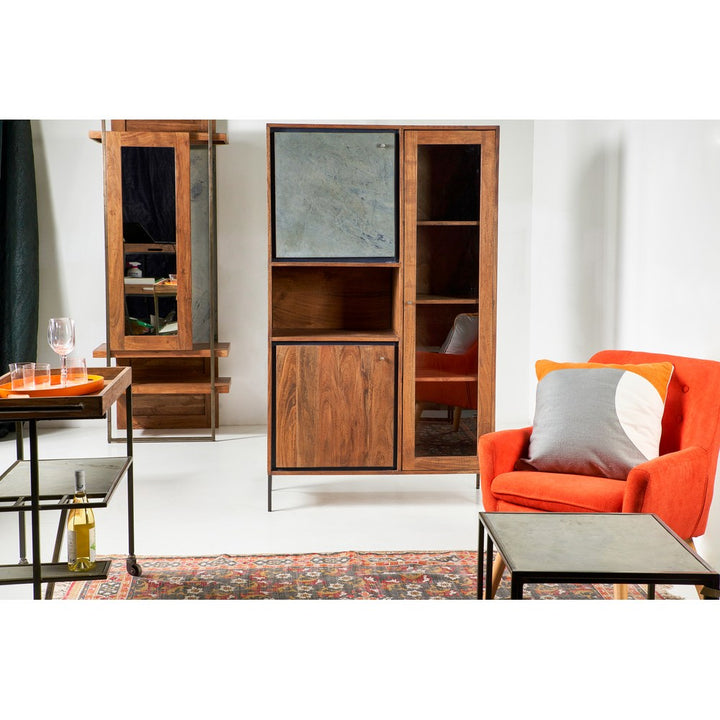 Il carrello portabottiglie industrial è un complemento versatile e decorativo, perfetto per creare un angolo bar mobile in stile moderno. Realizzato artigianalmente in legno di acacia e struttura in ferro, offre due ampi ripiani utili per organizzare bottiglie, bicchieri e accessori. Le ruote laterali permettono di spostarlo facilmente da una stanza all’altra, ideale per servire ospiti o per arredare spazi dinamici. Il design pulito e il contrasto tra legno caldo e metallo scuro lo rendono perfetto per ambienti industrial chic, open space e zone living, così come per spazi dedicati al bar e bistrot di lusso. Disponibile anche nel nostro Outlet Arredamento di Lusso con sconti fino al 70%.