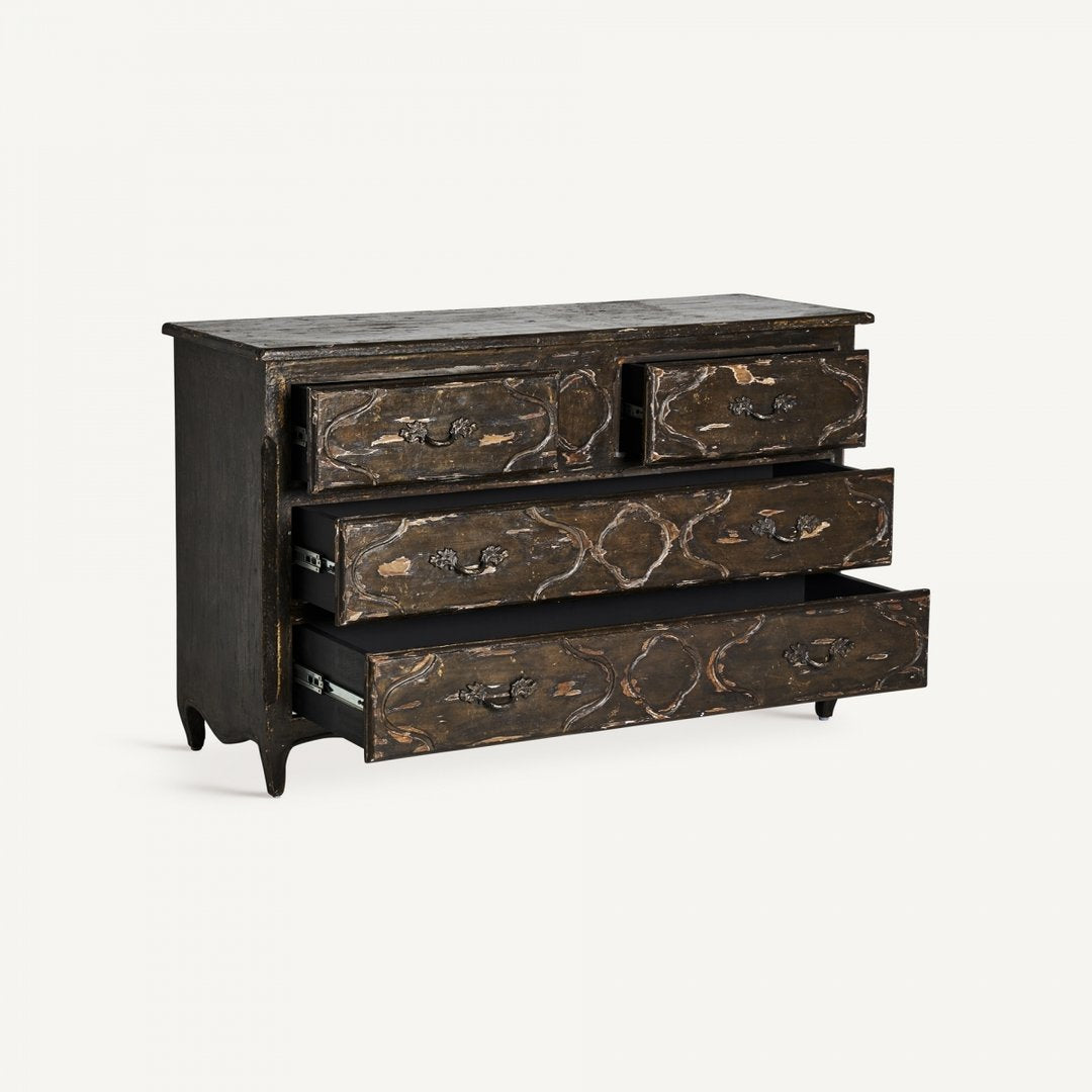 Il design del Comò è ispirato allo stile classico e anticato, con dettagli che evocano un senso di eleganza senza tempo. Questo mobile è una dichiarazione di classe e raffinatezza.