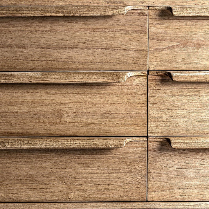 Questa Cassettiera Etnica Naturale, realizzata in legno massello di mindi, unisce eleganza e funzionalità in un design compatto e versatile, ideale per ogni ambiente domestico.