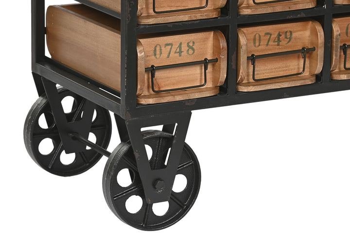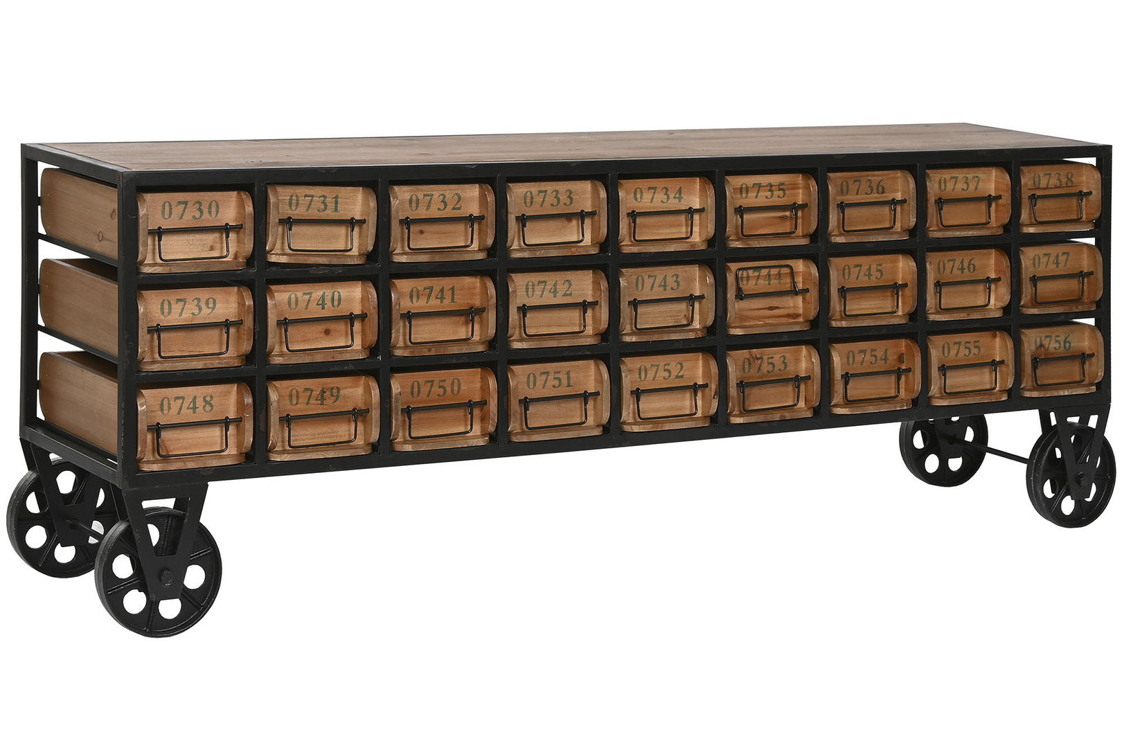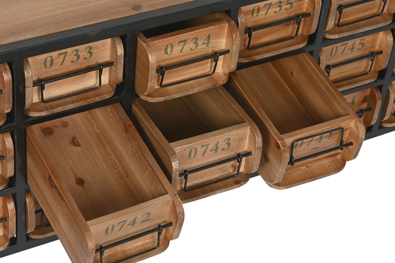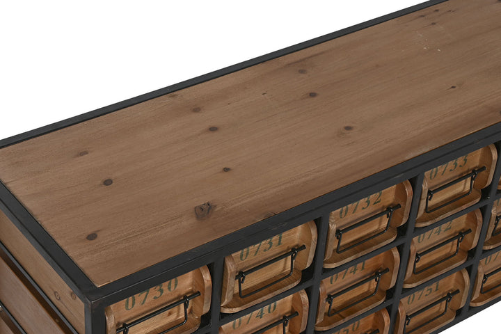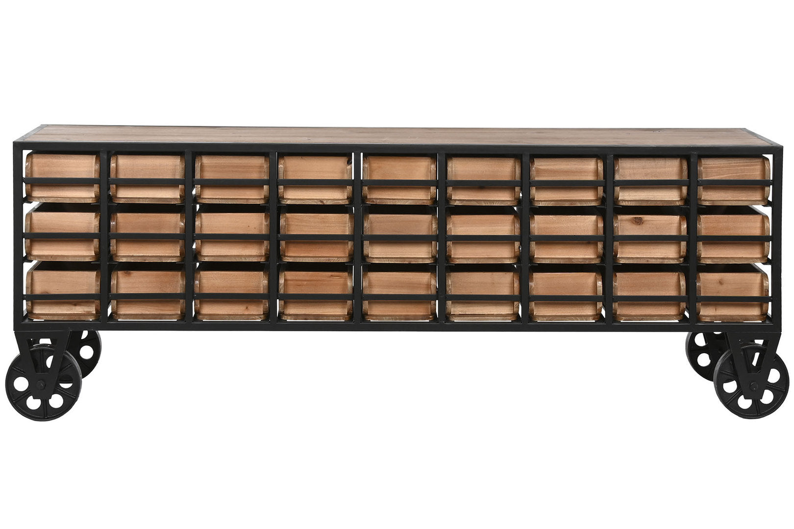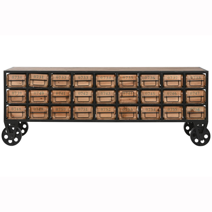 Sei alla ricerca di un'aggiunta industrial e funzionale al tuo arredo? La nostra Cassettiera Industrial con Ruote è la risposta perfetta per chi ama il connubio tra design e praticità. Realizzata con una solida struttura in legno massello di abete e ferro, questa cassettiera non solo è robusta ma anche piena di carattere, grazie alle sue 27 unità di cassetti che offrono un'ottima organizzazione e un aspetto decisamente vintage. Ogni cassetto, di 11 cm di larghezza e 23,5 cm di profondità, con un'altezza di 7,5 cm, è perfetto per conservare tutti quegli oggetti che desideri tenere a portata di mano ma ordinati. Misurando 142 cm x 30 cm x H 50 cm, questa cassettiera è ideale per chi cerca soluzioni vintage online con un'anima contemporanea.