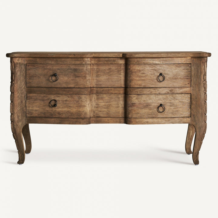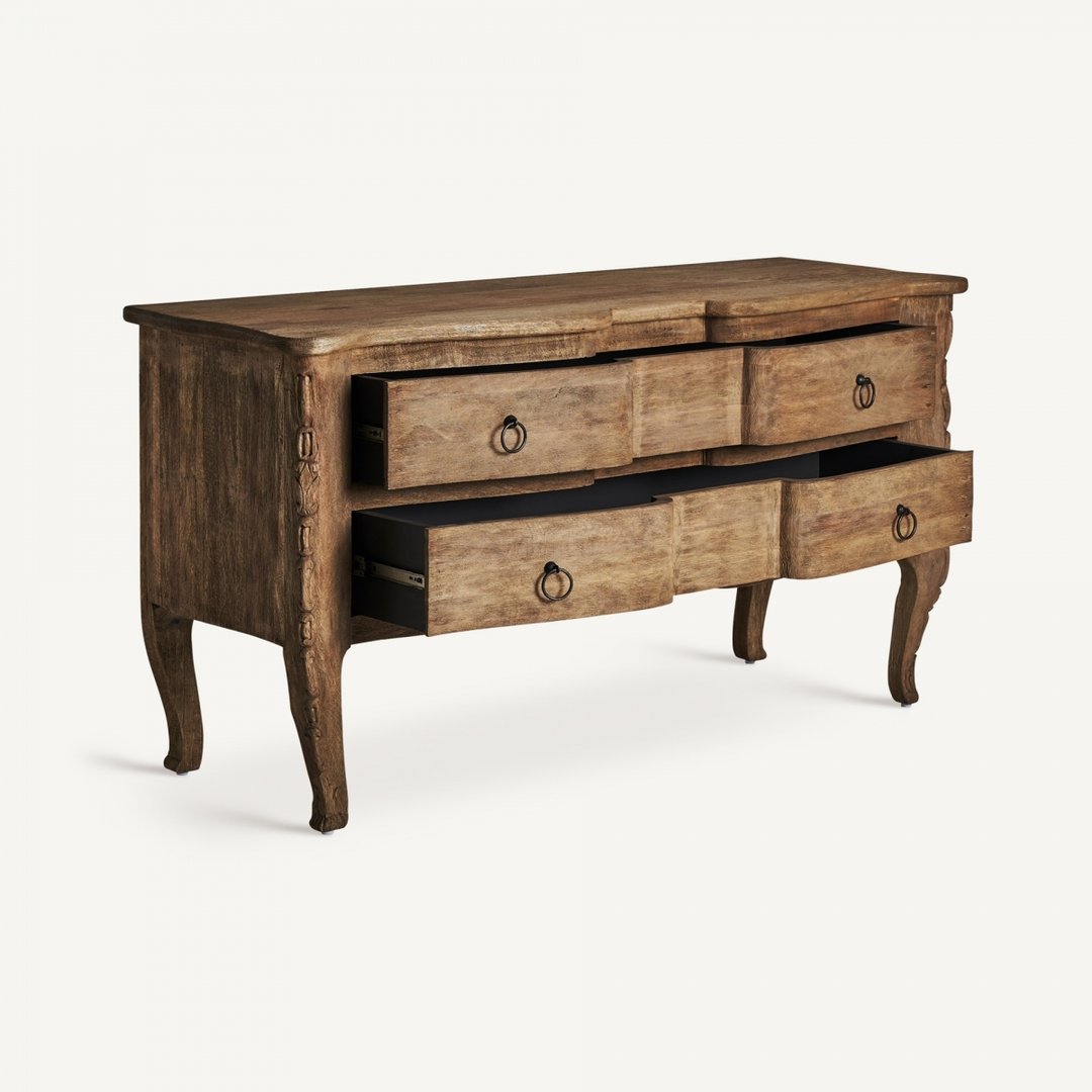 Il design della Cassettiera è ispirato allo stile coloniale, con eleganti dettagli che richiamano l'epoca Luigi XVI. Questo mobile è una dichiarazione di classe e raffinatezza.