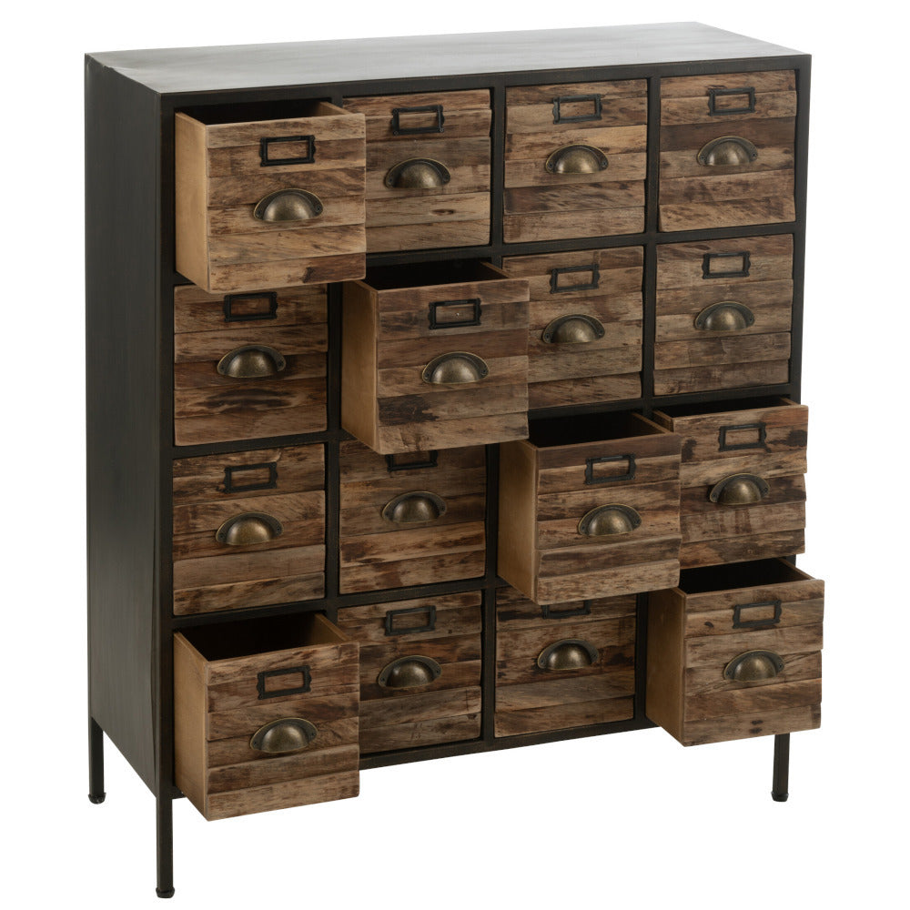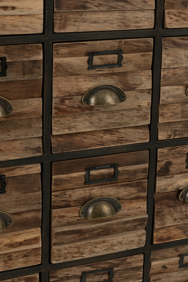 Perfetta per chi ama lo stile industriale, questa cassettiera industrial chic unisce la solidità del ferro con il fascino naturale del legno, creando un mobile di grande impatto estetico. Dotata di 24 cassetti con maniglie in metallo effetto vintage e portanome in stile archivio, offre un'ampia capacità di organizzazione per oggetti, documenti o accessori. La struttura in ferro nero conferisce stabilità e resistenza, mentre i cassetti in legno presentano una finitura vissuta che esalta il carattere industrial. Con un peso di 33 kg, questo mobile è perfetto per arredare soggiorni, ingressi o uffici dal design moderno e ricercato. Ideale per chi cerca cassettiere industrial online, questa cassettiera è un mix perfetto di estetica vintage e funzionalità contemporanea, aggiungendo un tocco unico ai tuoi ambienti.