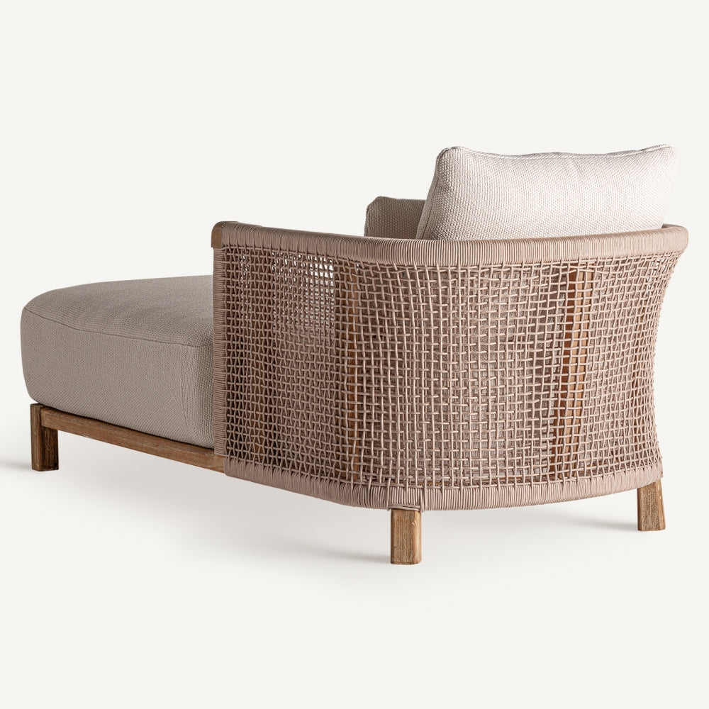 Lo stile tropicale si esprime attraverso questa elegante chaise longue, un perfetto equilibrio tra leggerezza e robustezza. Con dimensioni di cm 96 x 180 H 70 e un peso di 50,4 kg, questa chaise longue offre un design che unisce praticità e sofisticatezza. La struttura è realizzata in legno di teak riciclato, noto per la sua resistenza e sostenibilità, mentre il rivestimento in rattan aggiunge un tocco naturale e raffinato. Lo schienale avvolgente, con una dimensione di 65 x 20 x 45 cm, garantisce un supporto ergonomico e un comfort ottimale. La seduta misura 74 x 165 x 32 cm, rendendola ideale per momenti di relax sia in ambienti interni che esterni. Grazie alla resistenza agli agenti atmosferici, questa chaise longue è perfetta per chi cerca divani tropicali online che combinano funzionalità, estetica e sostenibilità. Un complemento d’arredo esclusivo per spazi dal carattere deciso e armonioso.