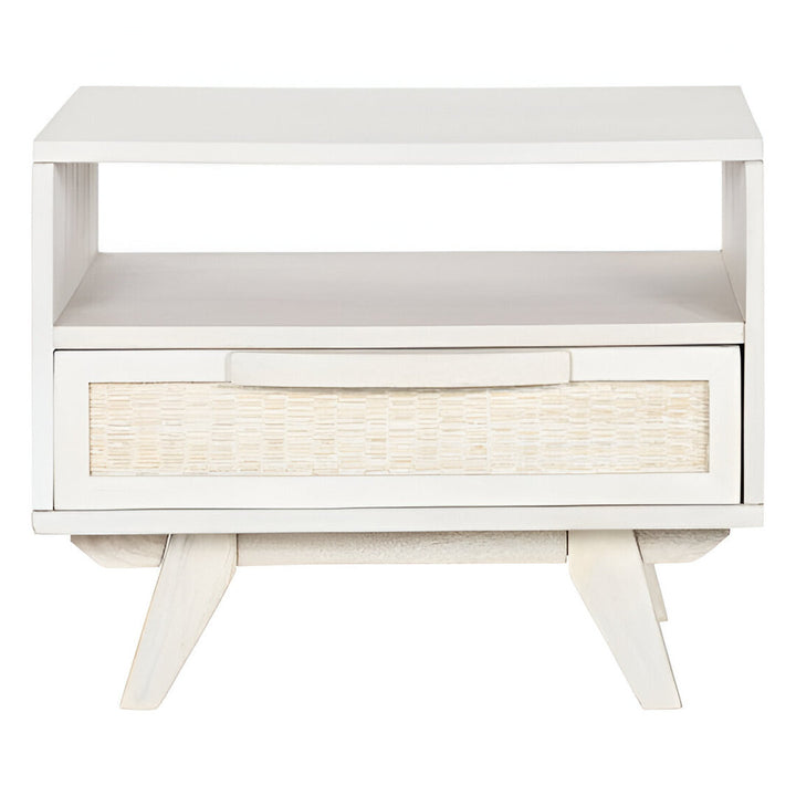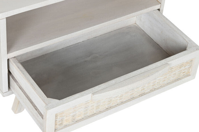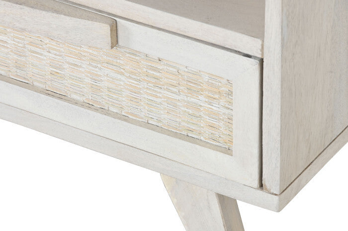 Comodino Coloniale Bianco in Legno di Mango e Rattan