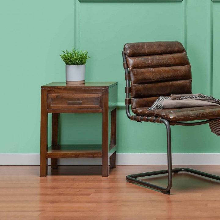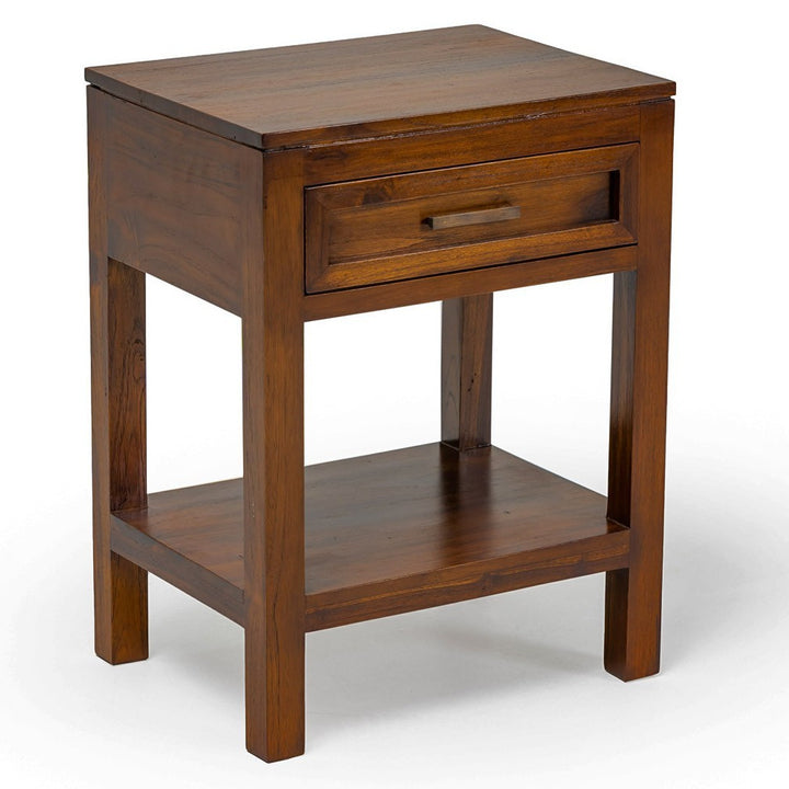 Scopri l'eleganza del Comodino Country Chic con un design moderno e linee essenziali, perfetto per completare l'arredo della tua camera da letto con uno stile sobrio e raffinato. Questo comodino è realizzato interamente in legno massello di teak naturale e presenta una finitura in noce coloniale che esalta le qualità visive e tattili del legno. Dotato di un cassetto e un ripiano, offre una soluzione pratica per organizzare oggetti essenziali a portata di mano. Le dimensioni sono 45 cm di larghezza, 35 cm di profondità e 60 cm di altezza, rendendo questo comodino un complemento ideale sia per spazi moderni che tradizionali. Perfetto per inserirsi in ambienti arredati secondo lo stile classico, rustico, etnico o shabby chic, unisce funzionalità ed estetica in modo impeccabile.