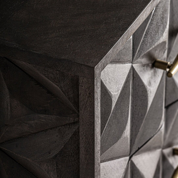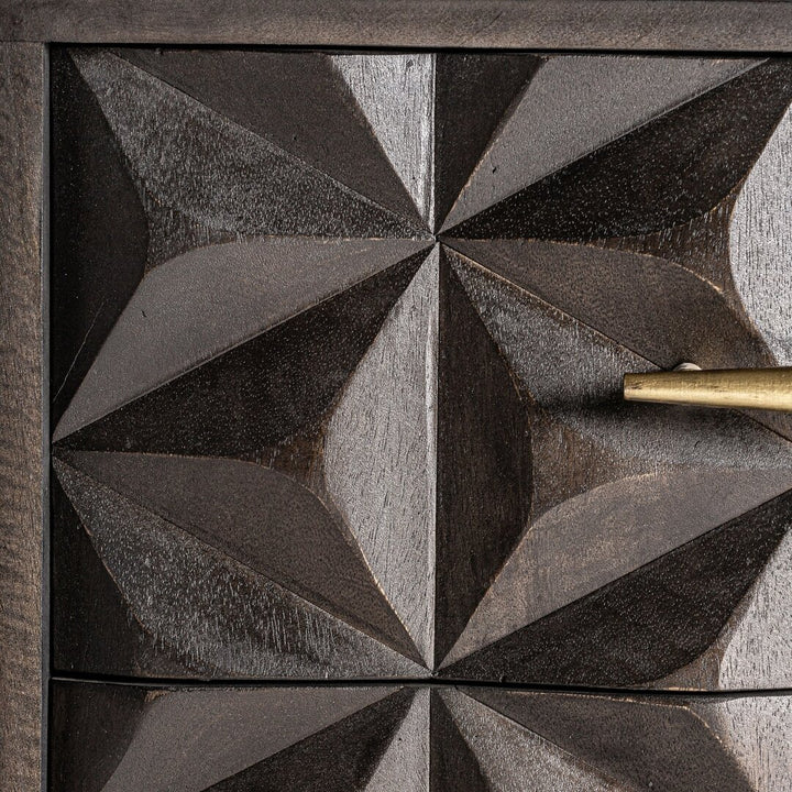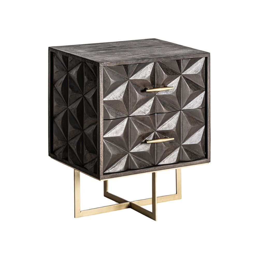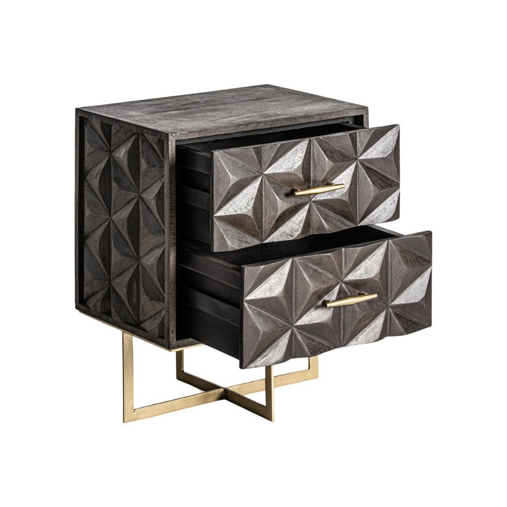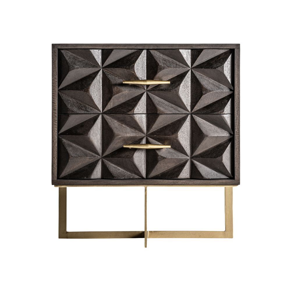 Comodino Stile Art Déco con Cassetti in Legno di Mango e Ottone