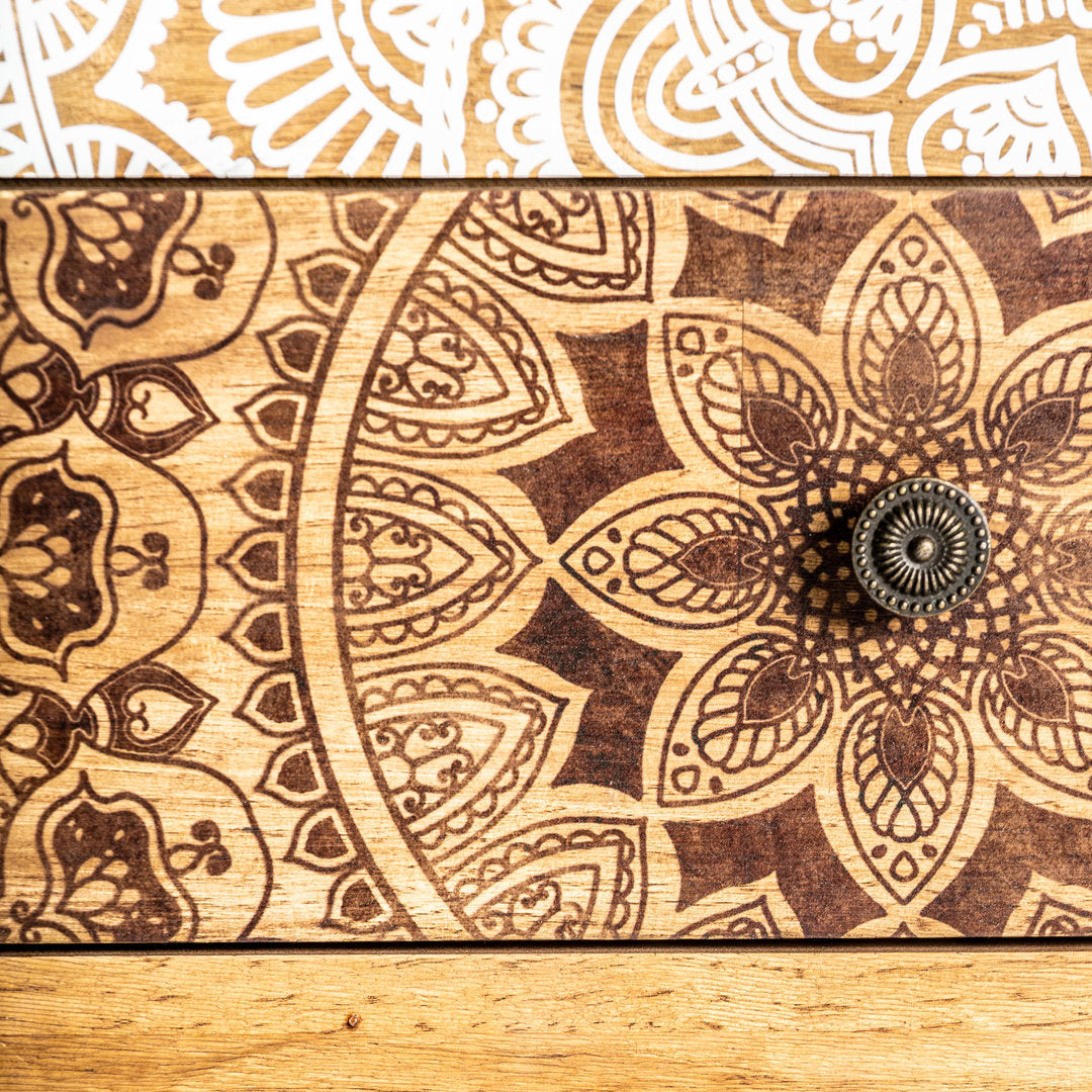 Comodino Vintage Dipinto: Fascino Etnico e Artigianale