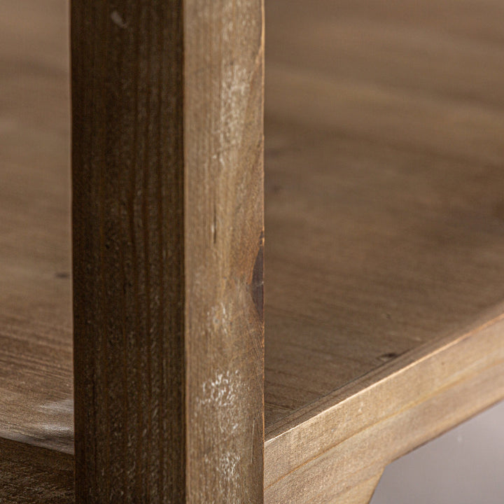 La finitura rustica del legno, che può presentare nodi o impurità tipiche, aggiunge un carattere autentico e unico a questo pezzo.