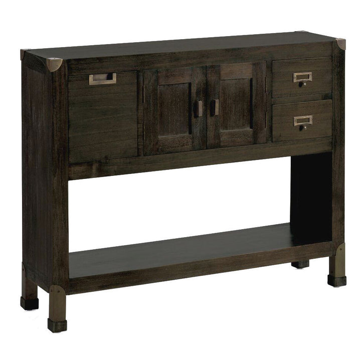 maniglie e decori in ottone anticato, effetto legno leggermente decapato