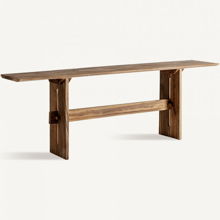 Lo stile nordico si distingue per la sua semplicità funzionale, unita all'uso di materiali naturali che conferiscono calore agli ambienti. Questa consolle living etnica interpreta perfettamente lo stile scandinavo, abbinando il design minimalista al fascino unico del legno massello di recupero. La sua finitura naturale valorizza le venature e le imperfezioni del legno, donando al mobile un carattere autentico e sostenibile. Con dimensioni di 214 x 40 x 72 cm e un peso di 38,2 kg, questa consolle offre solidità e stabilità, pur mantenendo un’estetica leggera. Le gambe, di 3 x 30 x 68 cm, e il piano spesso 3 cm supportano fino a 40 kg di carico, rendendola ideale per esposizioni decorative o oggetti funzionali. Le parti staccabili semplificano il trasporto e l'assemblaggio. Perfetta per chi cerca mobili nordici, arredi etnici o consolle in legno naturale, questa consolle aggiunge un tocco di raffinatezza a soggiorni e ingressi contemporanei.