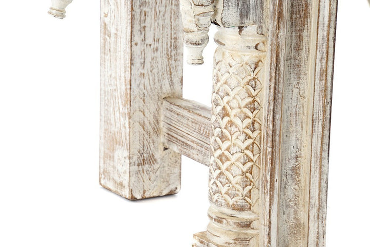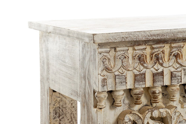 Esplora l'incanto del mondo etnico con la nostra meravigliosa Consolle Etnica India Bianca Decapata. Questo pezzo d'arredamento rappresenta l'essenza di un design ricco di storia e cultura, realizzato con legno massello di mango di alta qualità.