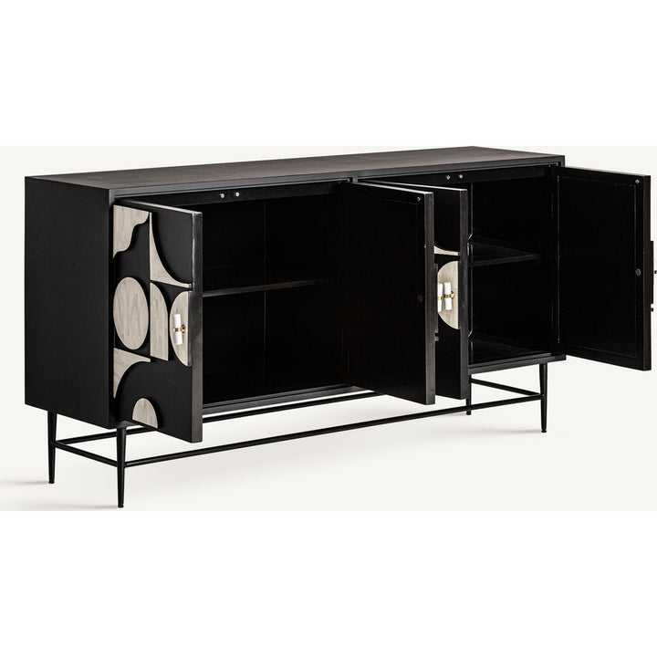 NOTE: MDF nero osso bianco, base ferro, 4 ante, variazioni naturali, prodotto artigianale.