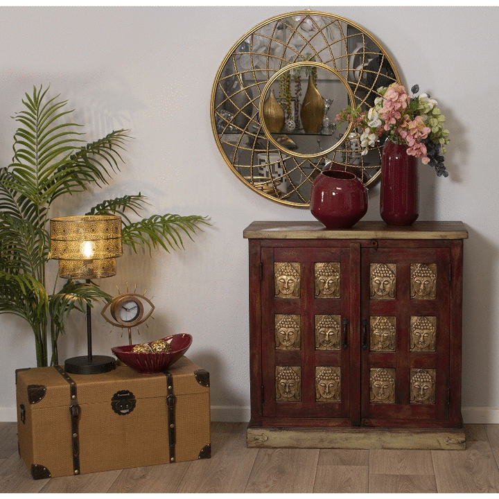 Buffet etnico legno ottone dorato anticato