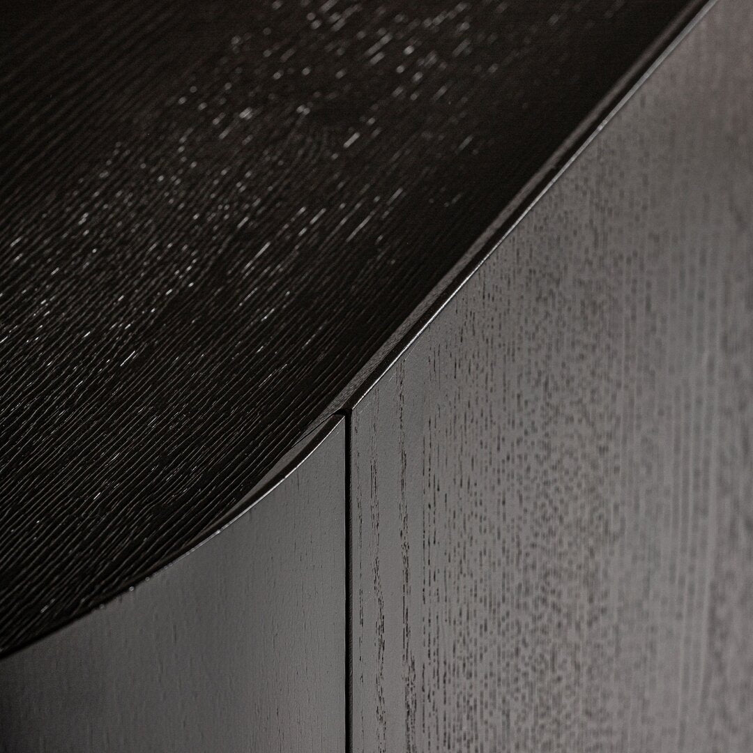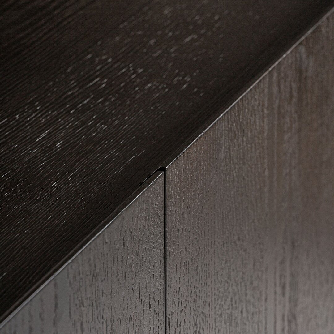 Questa credenza art déco, realizzata in legno di quercia con dettagli in bronzo e finiture in oro, combina estetica e funzionalità. Le sue dimensioni di 220x50x86 cm