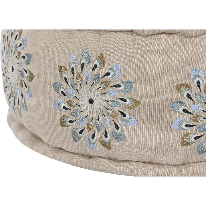 Cuscino da Pavimento Bohemian in Cotone Ricamato Beige e Celeste