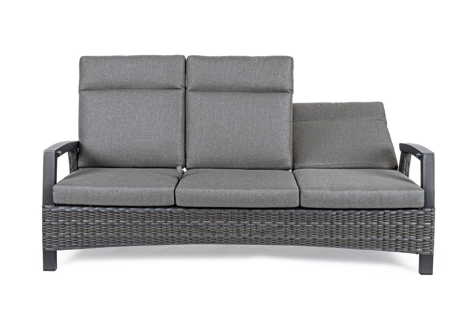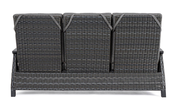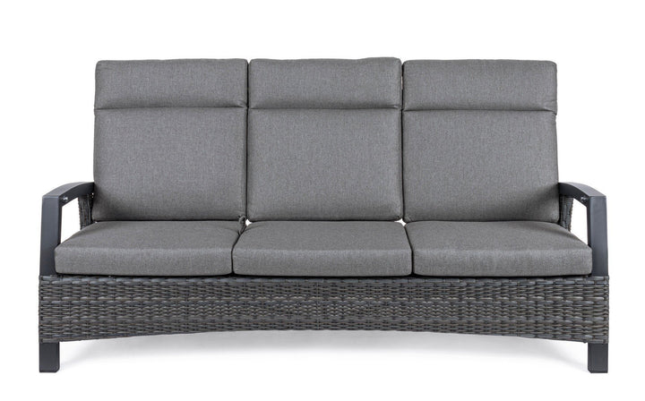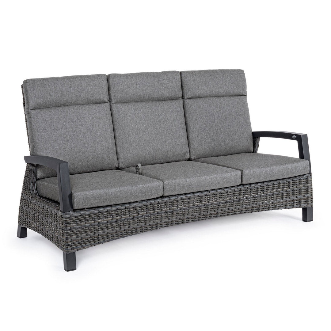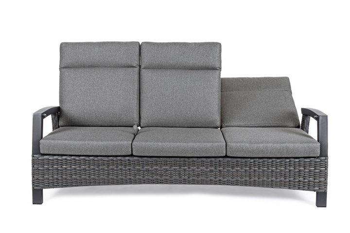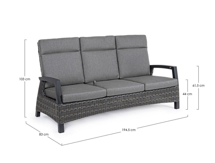 All'interno delle proposte per l'arredamento esterno, il divano da giardino 3 posti rappresenta una scelta di prestigio per chi desidera abbinare estetica e funzionalità nel proprio spazio all'aperto. Questo divano, realizzato in acciaio e rattan sintetico di colore antracite, con dimensioni di 185 x 83 H 103 cm e un peso di 37 kg, si distingue per la capacità di offrire un comfort superiore, grazie ai singoli posti reclinabili indipendentemente. La struttura in alluminio, verniciata a polvere di poliestere, insieme all'intreccio in fibra sintetica, non solo conferisce al divano una resistenza notevole agli agenti atmosferici ma ne facilita anche la manutenzione, mantenendone inalterata la bellezza nel tempo. Ogni dettaglio è pensato per garantire un relax senza eguali: dai cuscini sfoderabili in tessuto Olefin (100% polipropilene), che aggiungono un tocco di eleganza, alla possibilità di regolare lo schienale di ogni posto per adattarsi a ogni esigenza di comfort. Dettagli ergonomici come l'altezza della seduta di 44 cm e quella dei braccioli di 61,5 cm, enfatizzano ulteriormente il comfort e l'accessibilità. Con un design che integra praticità e una linea estetica moderna, questo divano è l'ideale per chi ricerca soluzioni di arredo da giardino di alta qualità, capaci di trasformare qualsiasi spazio esterno in un'oasi di benessere e stile.