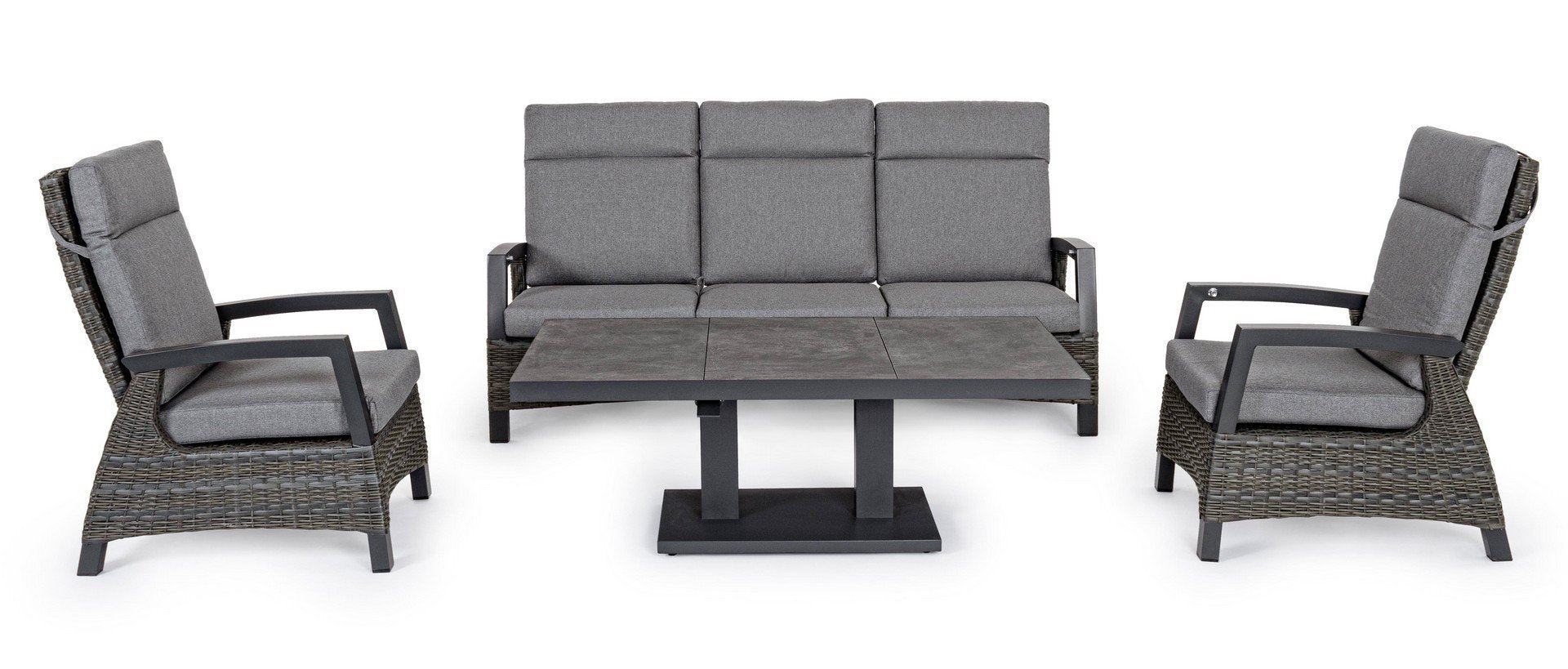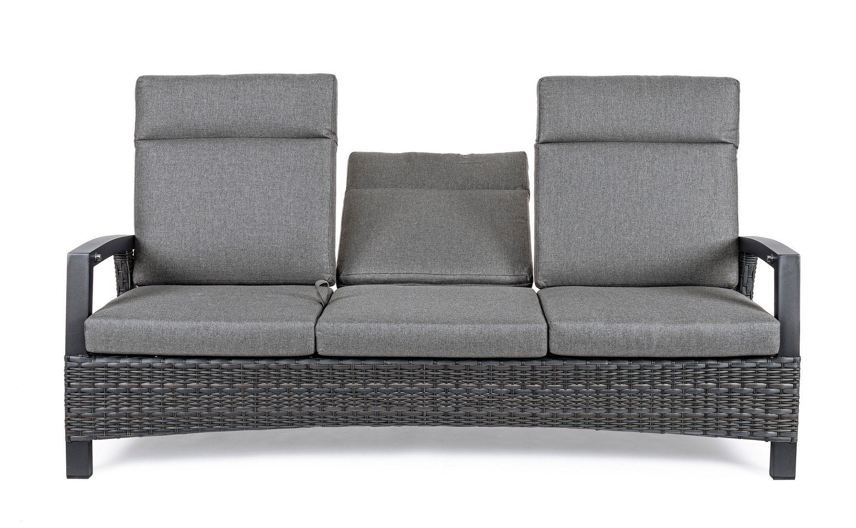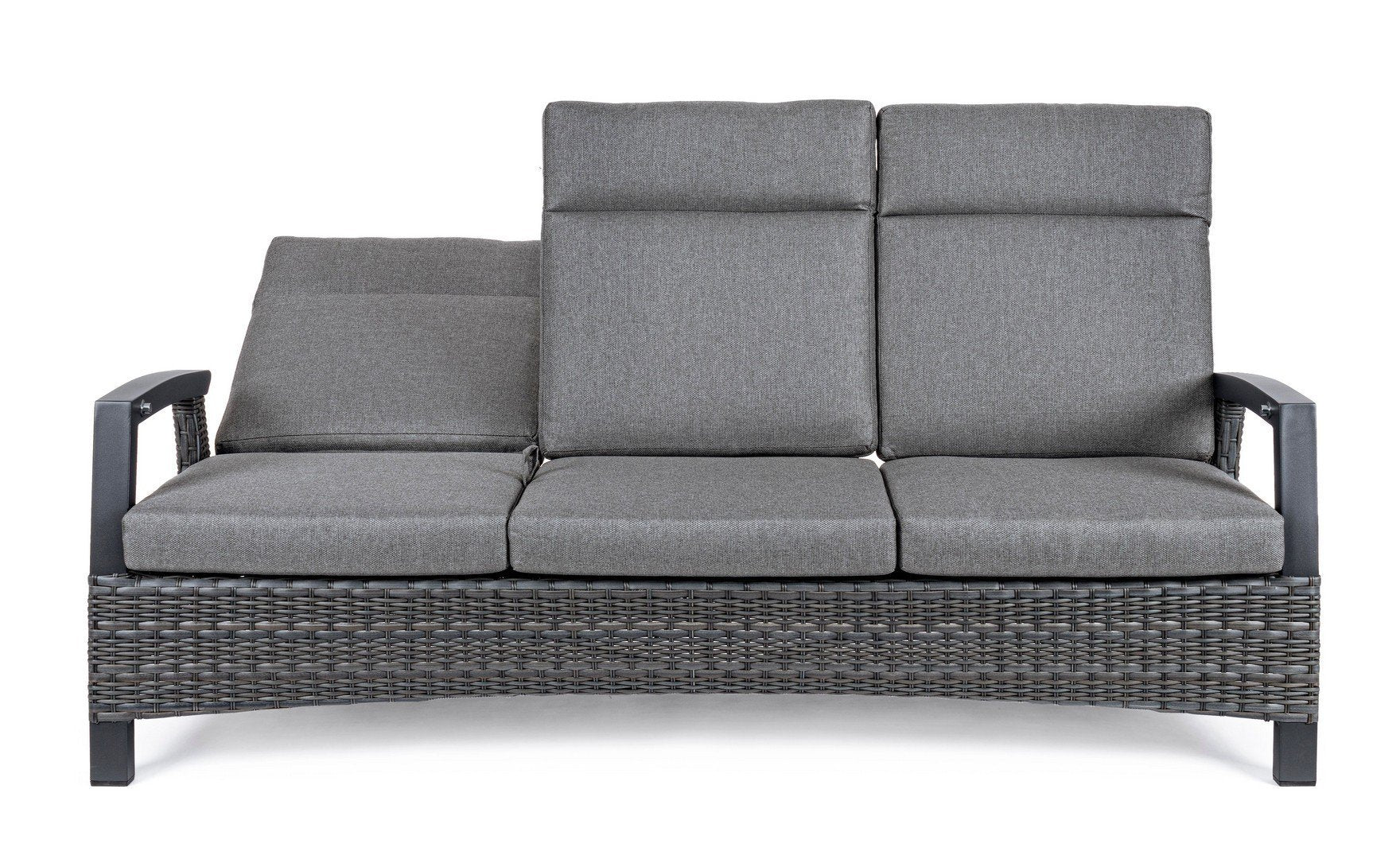 All'interno delle proposte per l'arredamento esterno, il divano da giardino 3 posti rappresenta una scelta di prestigio per chi desidera abbinare estetica e funzionalità nel proprio spazio all'aperto. Questo divano, realizzato in acciaio e rattan sintetico di colore antracite, con dimensioni di 185 x 83 H 103 cm e un peso di 37 kg, si distingue per la capacità di offrire un comfort superiore, grazie ai singoli posti reclinabili indipendentemente. La struttura in alluminio, verniciata a polvere di poliestere, insieme all'intreccio in fibra sintetica, non solo conferisce al divano una resistenza notevole agli agenti atmosferici ma ne facilita anche la manutenzione, mantenendone inalterata la bellezza nel tempo. Ogni dettaglio è pensato per garantire un relax senza eguali: dai cuscini sfoderabili in tessuto Olefin (100% polipropilene), che aggiungono un tocco di eleganza, alla possibilità di regolare lo schienale di ogni posto per adattarsi a ogni esigenza di comfort. Dettagli ergonomici come l'altezza della seduta di 44 cm e quella dei braccioli di 61,5 cm, enfatizzano ulteriormente il comfort e l'accessibilità. Con un design che integra praticità e una linea estetica moderna, questo divano è l'ideale per chi ricerca soluzioni di arredo da giardino di alta qualità, capaci di trasformare qualsiasi spazio esterno in un'oasi di benessere e stile.