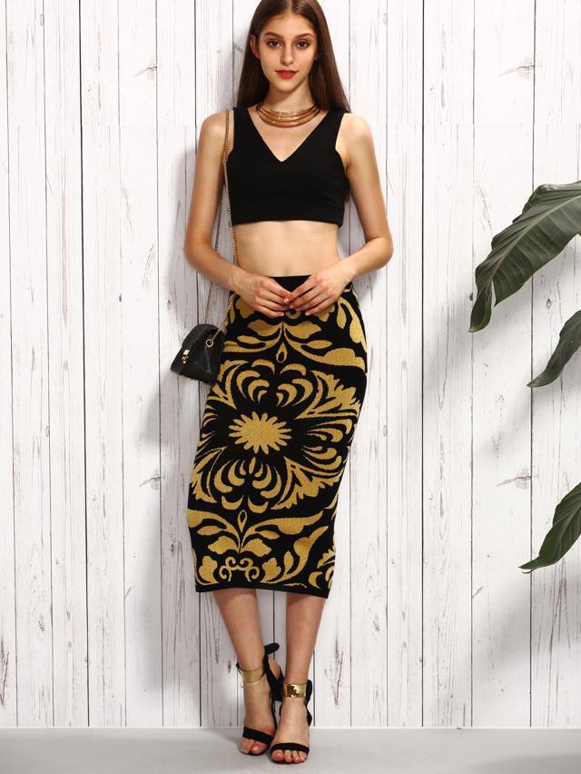Gonna elegante nero e oro