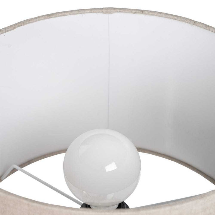 La lampada offre una luce soffusa e accogliente grazie alla sua paralume in lino, ideale per creare un'atmosfera rilassante in soggiorni, camere da letto o studi.