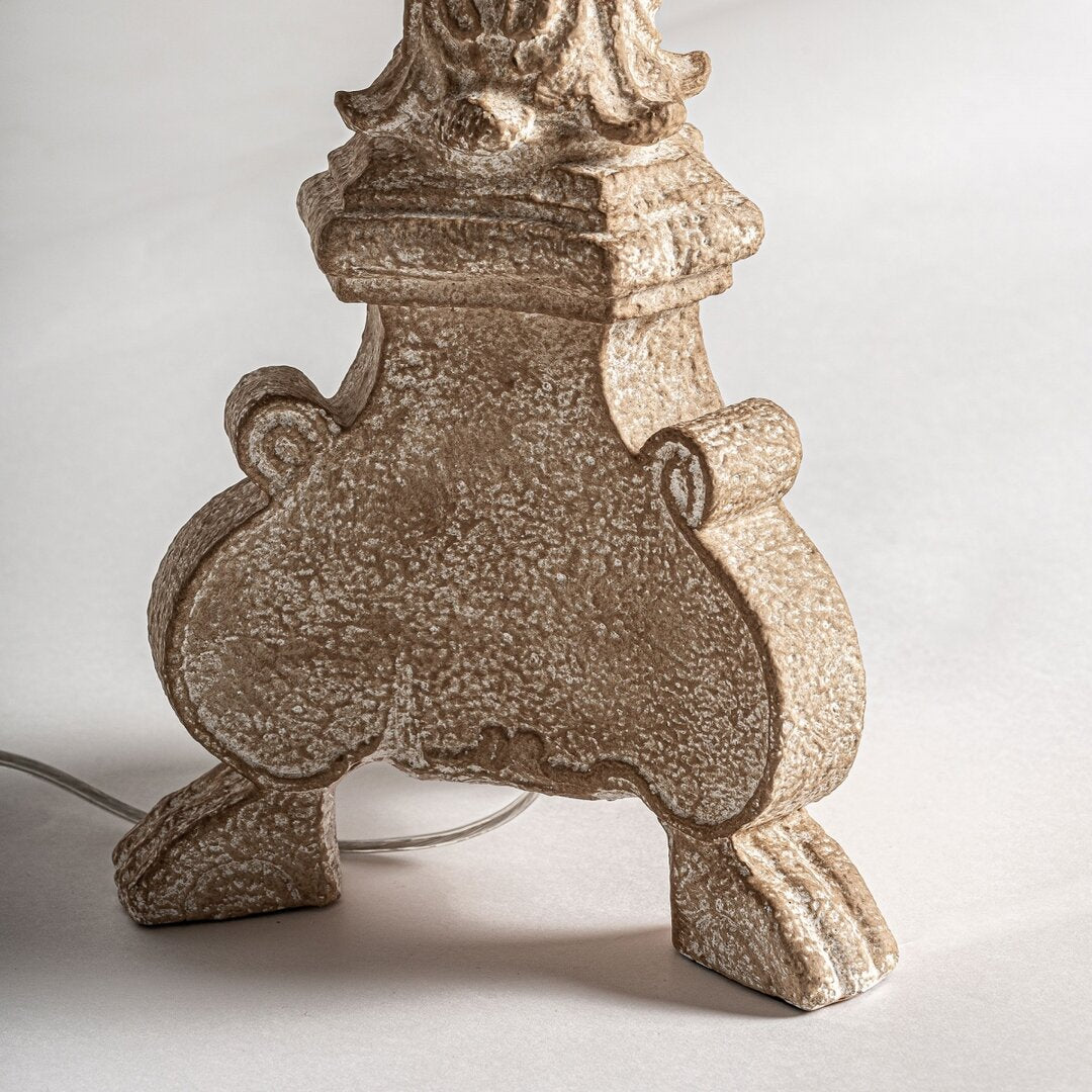 Questa lampada francese in stile retrò è un elemento d'arredo raffinato e funzionale, ideale per illuminare con classe ambienti dal gusto provenzale o shabby chic. La struttura è realizzata in resina artigianale lavorata con cura, mentre il paralume in cotone completa il design con un tocco delicato e accogliente. Perfetta per valorizzare salotti, camere da letto o angoli lettura, questa lampada unisce illuminazione e stile, contribuendo a rendere lo spazio più caldo e accogliente. La base stabile, dalle dimensioni di **20 x 20 H 72 cm**, garantisce equilibrio e resistenza, mentre il paralume, con larghezza di 40 x 37 H 28 cm, diffonde una luce morbida ed elegante. Questa lampada artigianale dal design retrò è la scelta perfetta per chi cerca lampade provenzali online, capaci di donare carattere e charme senza tempo a qualsiasi ambiente.