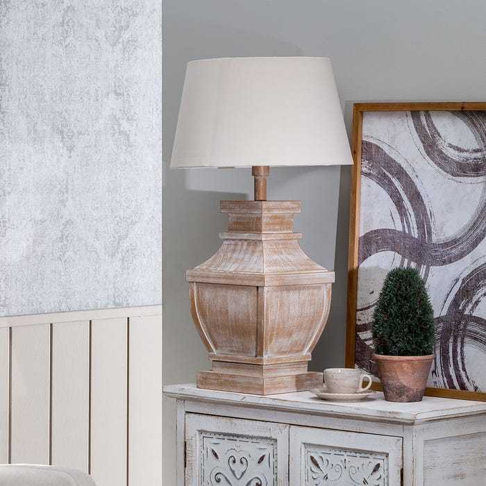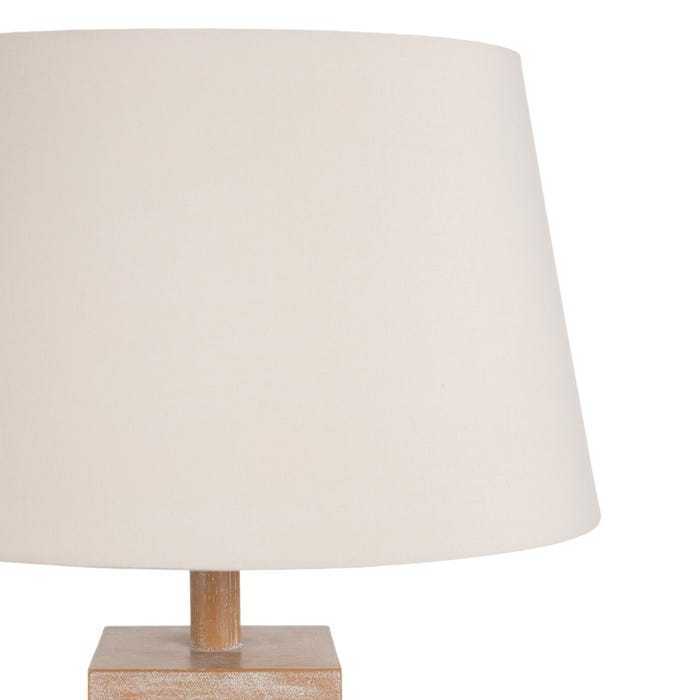 Questa lampada da tavolo naturale è un esempio di design armonioso tra la solidità del legno massiccio (26 x 26 x 62 cm) e l'eleganza del paralume in cotone e lino (35 x 45 x 26 cm). Il risultato è un'illuminazione piacevole e avvolgente, perfetta per creare un'atmosfera rilassante in ogni stanza.