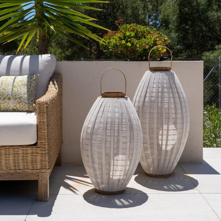 Lanterna Shabby Chic in Bambù Naturale e Lino Beige