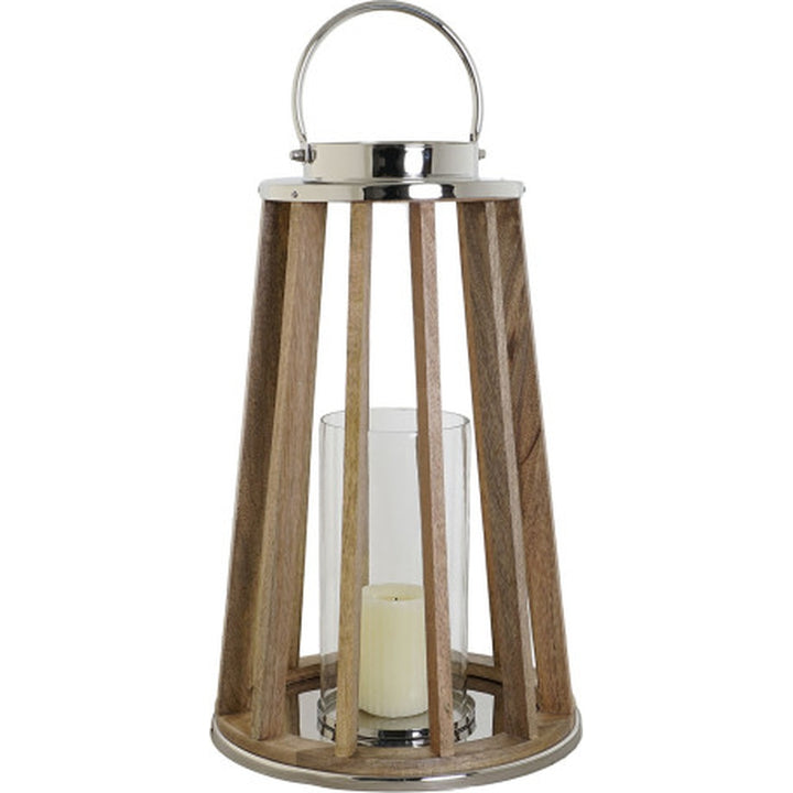 NOTE: Mango massello naturale, cristallo trasparente, dettagli in metallo platinato. Ideale per candele o LED. Prodotto artigianale: leggere variazioni rendono ogni pezzo unico.